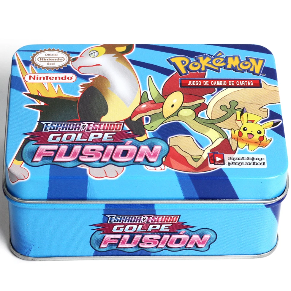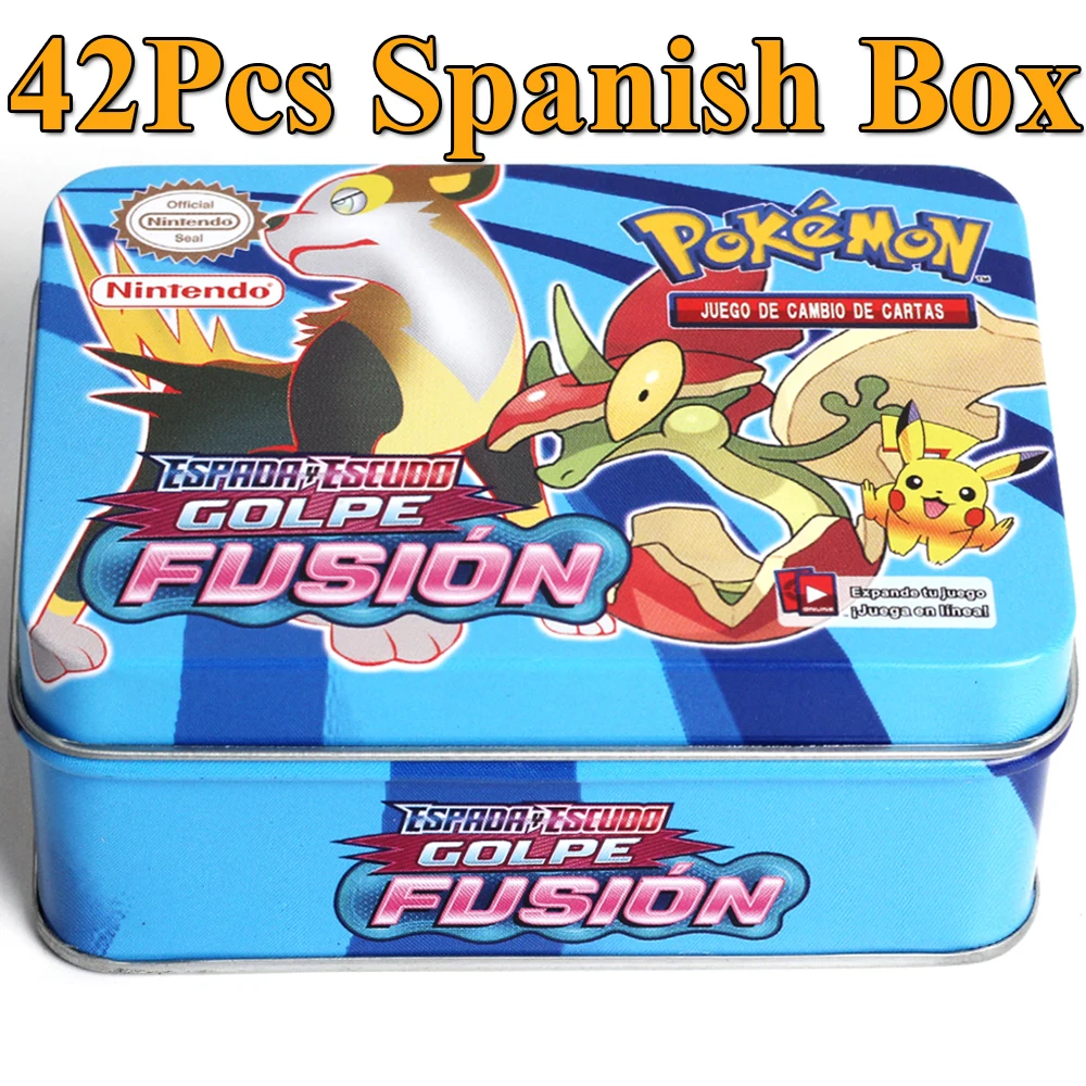 Испанская версия аниме 42 шт.компл. Покемон карточная игра железная металлическая коробка TAKARA TOMY игрушка боевая игра мультфильм Дети Рождественский подарок
