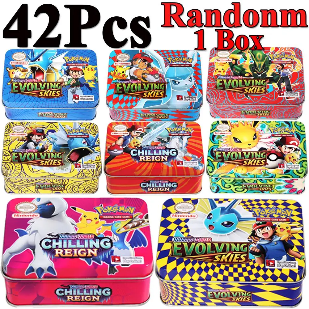 42 шт., карточки с покемонами, железная коробка, блестящие звезды, ...