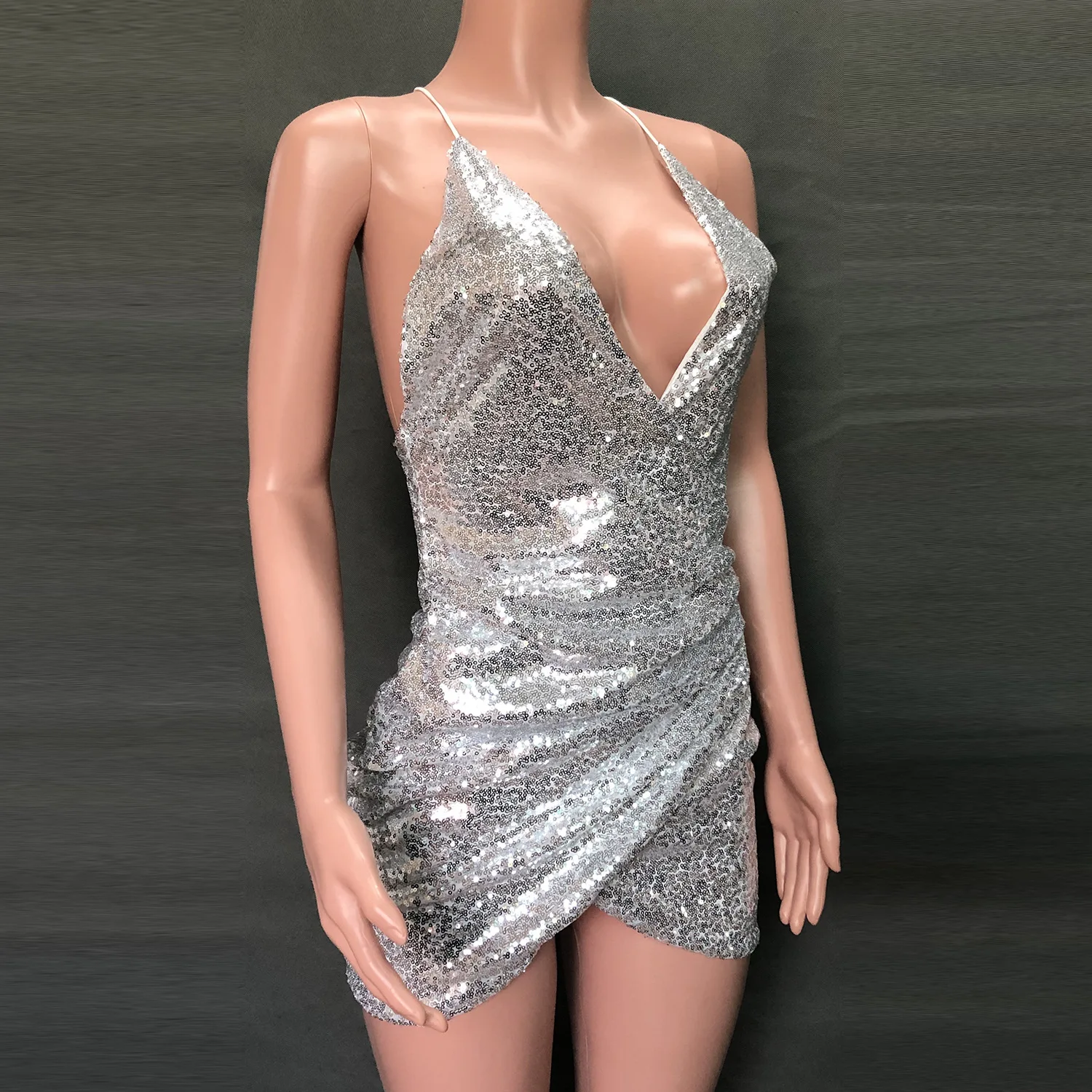 Сексуальное женское платье с V-образным вырезом, облегающее Короткое мини-платье, Клубная одежда, вечернее платье с запахом, асимметричное платье с открытой спиной