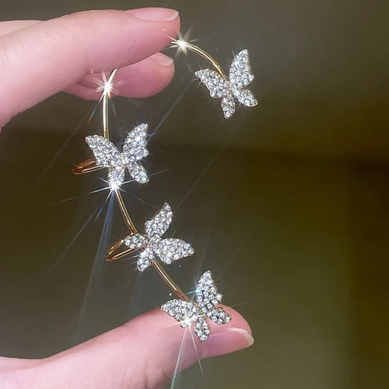 Металлические Хрустальные Клипсы-бабочки для ушей без пирсинга 2022 модные серьги-клипсы подвеска ювелирные изделия Модные манжеты для ушей свадебные аксессуары