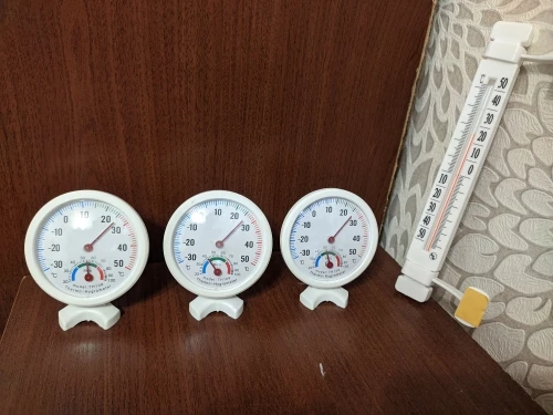 Брал за 105 рублей + красный купон, получилось 50 с копейками. Термометр не самый мелкий, сантиметров 10 в диаметре, риски чёткие, вглядываться в показания не придётся. Можно ставить на подставку, хоть она и не самая устойчивая, а можно на стенку повесить - есть отверстия сзади. Показания точные, не различаются с инфракрасным и спиртовым термометром. В случае расхождения результатов можно подкорректировать значения винтами сзади. Топ за свои деньги, единственное что все 3 термометра оказались поцарапаны, хоть и пришли от разных продавцов. Скорее всего на одном заводе клепают. На фото присмотритесь - прямо по центру циферблата потертости на оргстекле. Не критично, но эстетика пострадала. С другой стороны, за такую стоимость можно простить столь мелкий огрех.