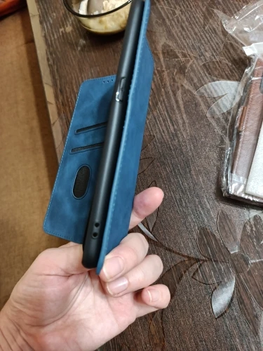 Чехол-книжка для телефона, из кожи, с отделениями для карт, с магни...