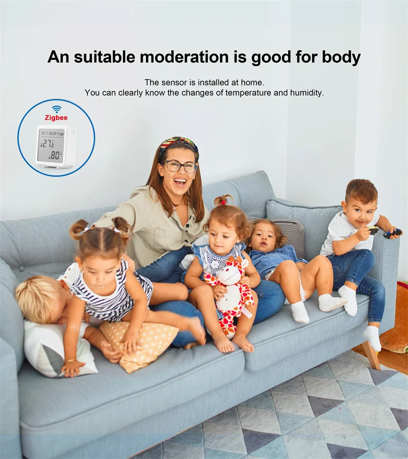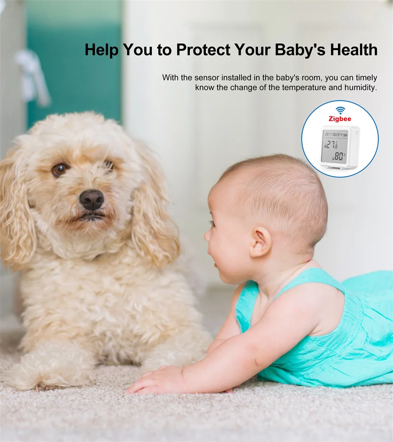 Температуру и влажность датчика температуры и влажности ZigBee можно просматривать удаленно, а детскую комнату можно контролировать в режиме реального времени.