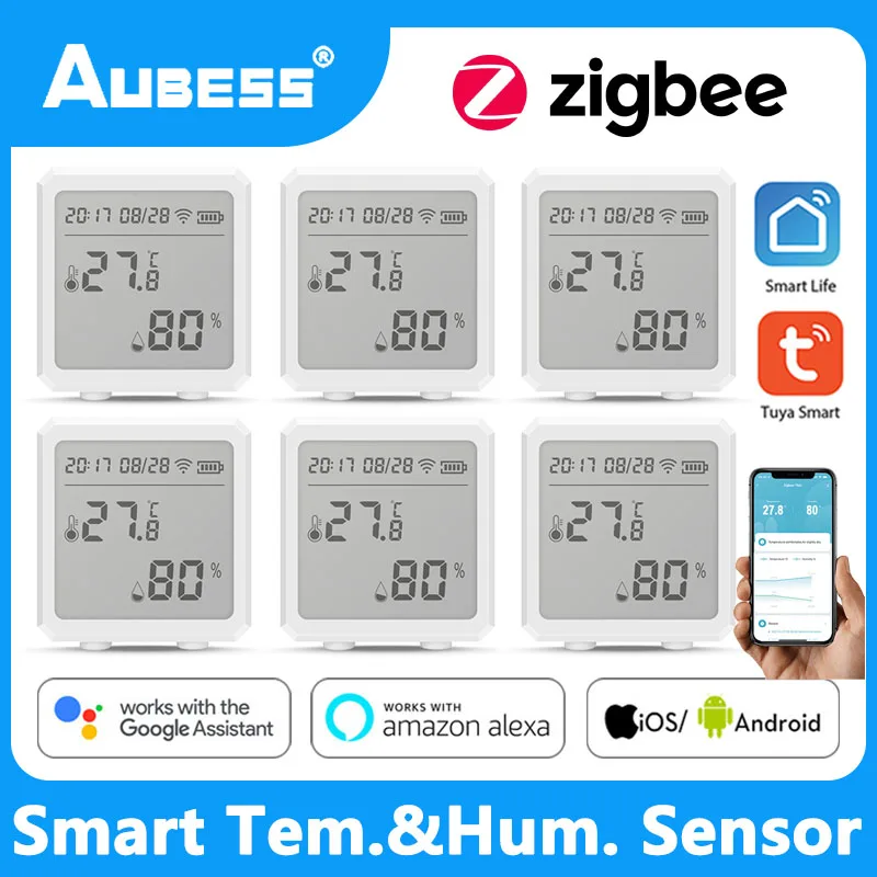 Умный термометр Aubess Zigbee Tuya, цифровой гигрометр для измерения влажности и температуры в доме и на улице, для Smart Life, Alexa Google