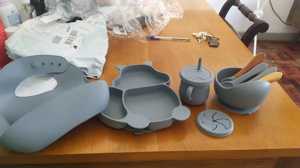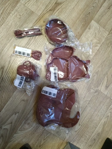 Комплект пришёл быстро, за 10 дней и весь полностью, как и заказывала, цвет соответствует картинке. Силикон без запаха. В целом посудой довольна, только вот на ложечке и внутри кружки есть такие пятнышки, но это не критично для меня. Не понравилось только то, что продавец не отправлял заказ неделю! До окончания отправки товара оставалось 23 часа, а продавец так и не спешил отправлять, пришлось продлить ещё на день! Написала продавцу, чтобы уже наконец-то выслал мне заказ, он ответил, что отправит в течении дня, но по итогу этого не произошло! Отправил только тогда, когда несколько раз писала ему.
