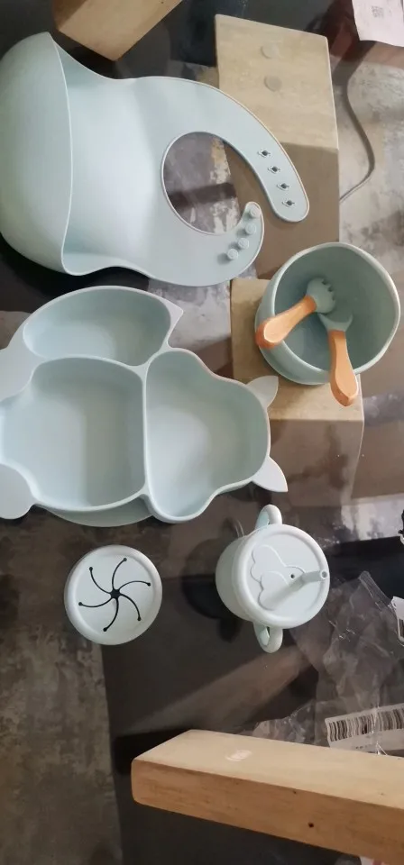Все в идеальном состоянии, заказ пришёл довольно быстро, тарелочки на присосках отличные! Только вилкой неудобно ничего есть, а так всем советую, очень хорошее качество тем более при такой цене! Слюнявчик очень мягкий, что позволяет ребёнку комфортно себя ощущать за приемом пищи!