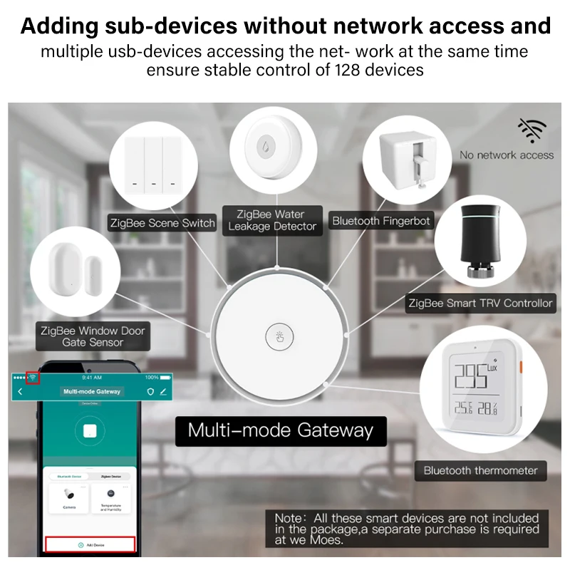 1. Подустройство управления как многомодовая Совместимость: управление подустройствами шлюза, поддержка дистанционного управления и группового управления для подключенных смарт-устройств Bluetooth и ZigBee в приложении smart Life как многопротокол связи для стандартного протокола ZigBee3.0 и стандартного протокола Bluetooth SIG, обеспечение стабильного контроля 128 устройств, что обеспечивает высокую производительность.