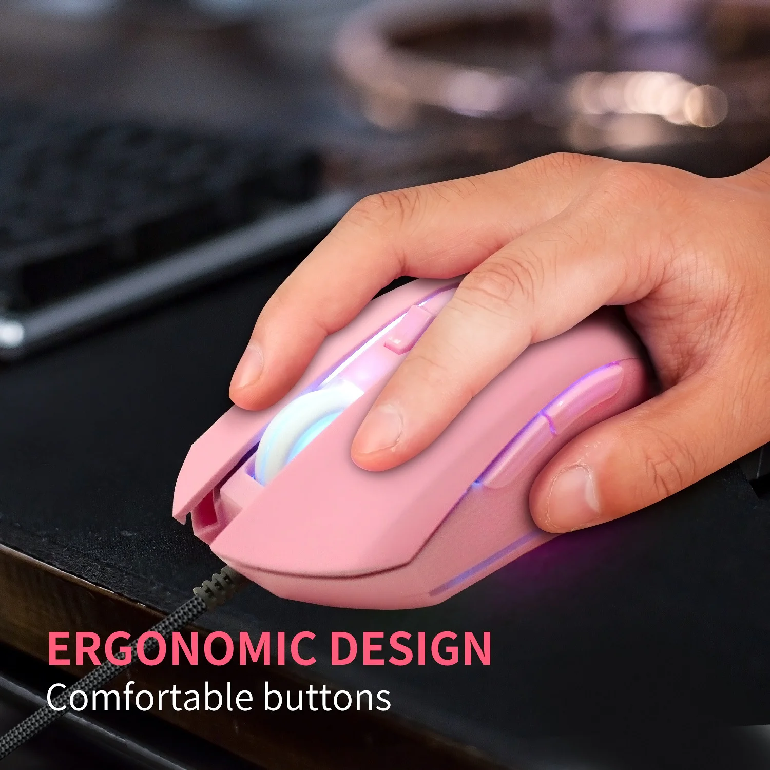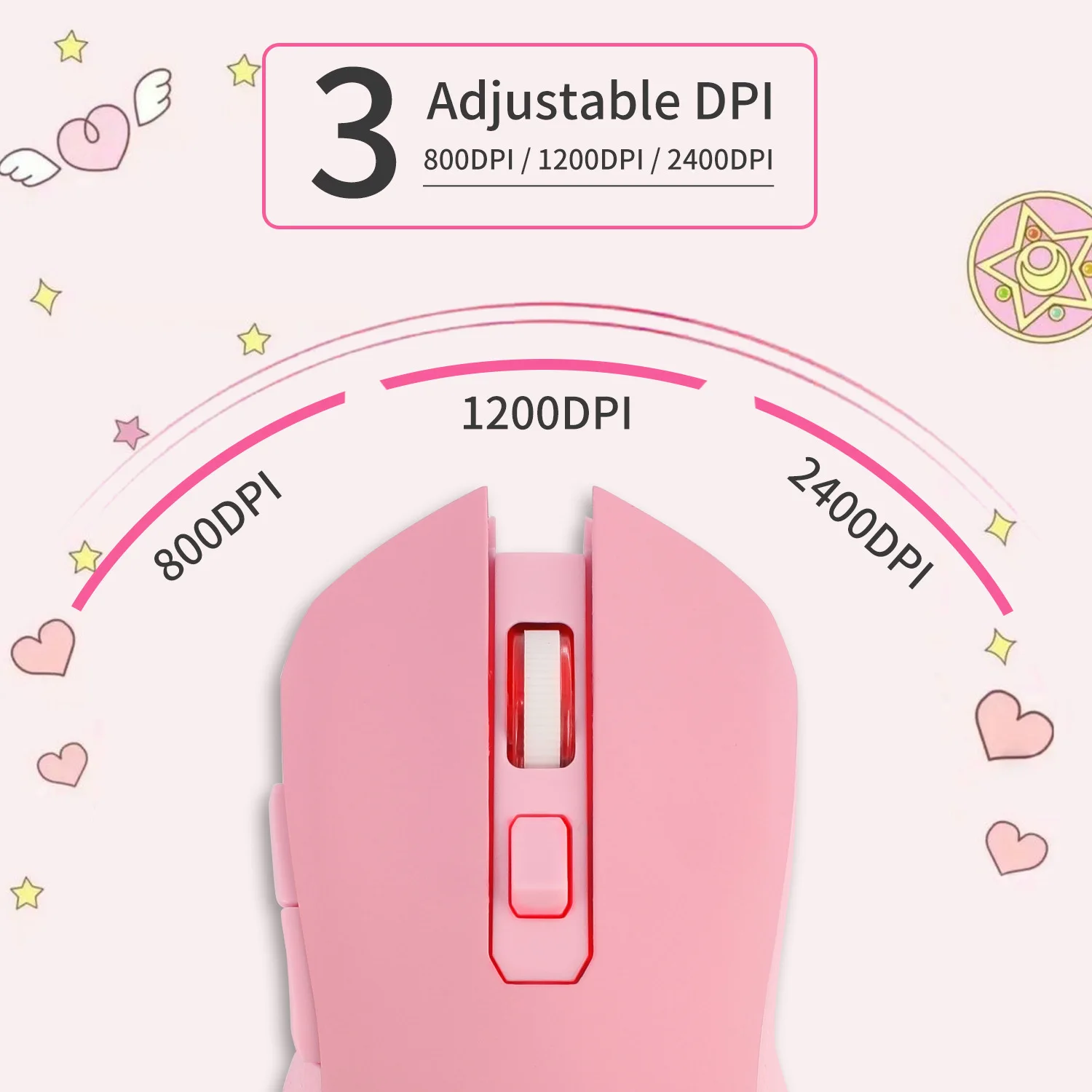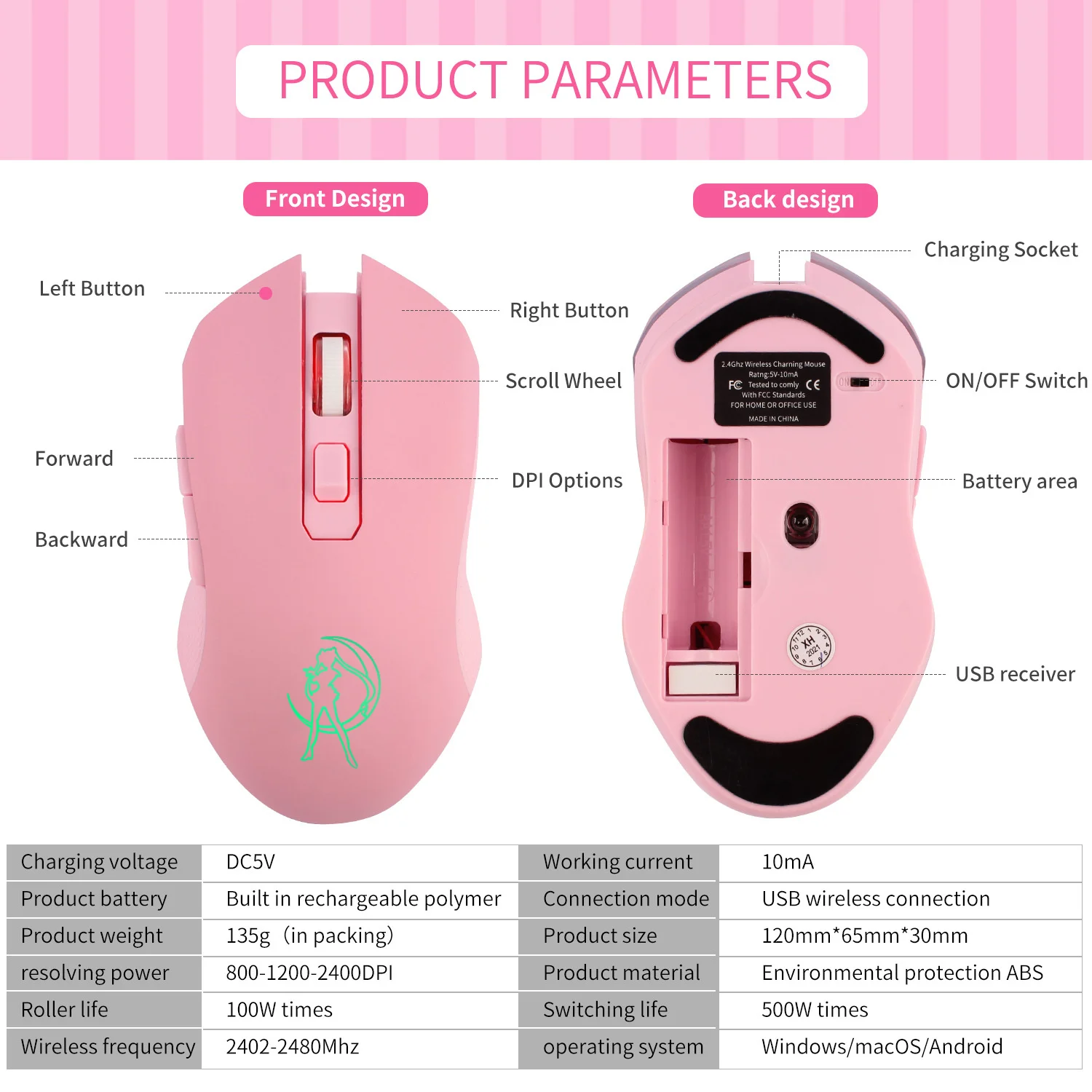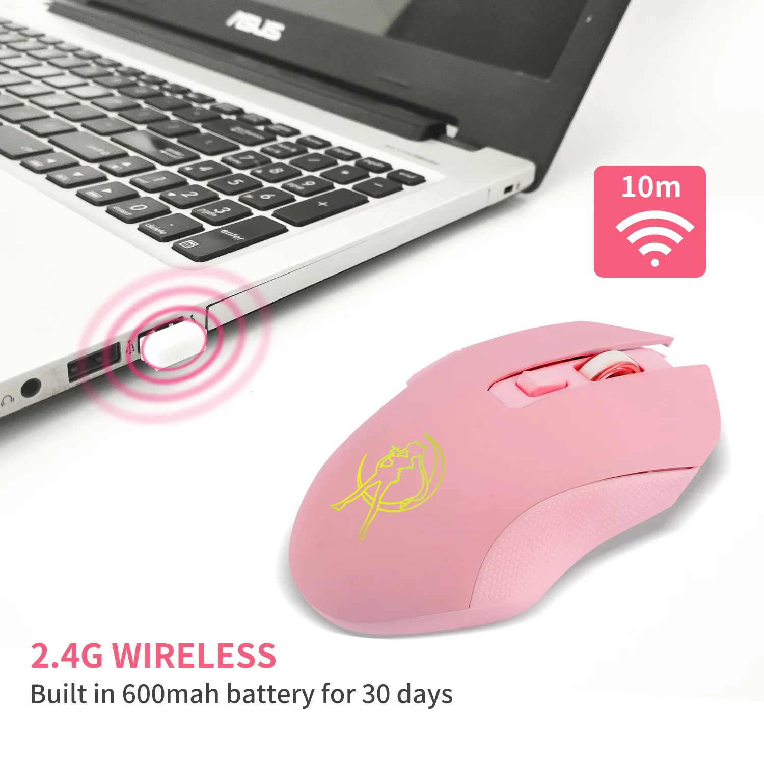 Розовая беспроводная мышь с подсветкой, оптическая перезаряжаемая, эргономичная, аниме, матроска, цветная, Mause, проводная, бесшумная, игровая мышь, 2400DPI