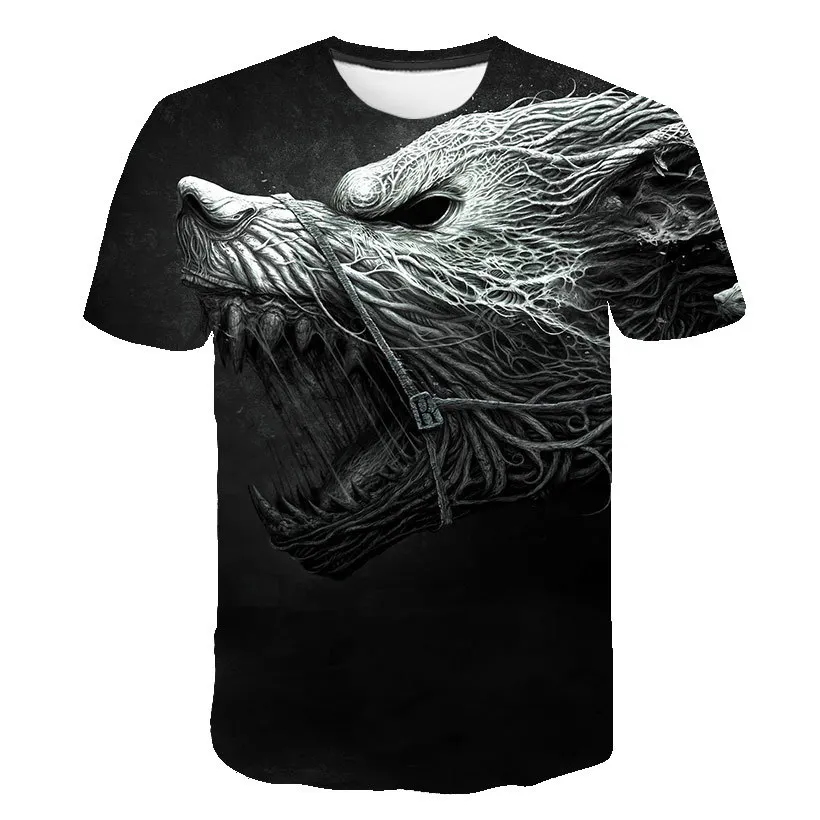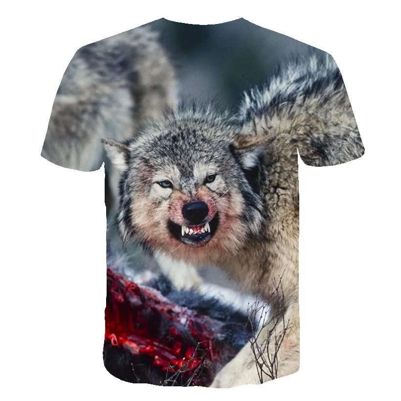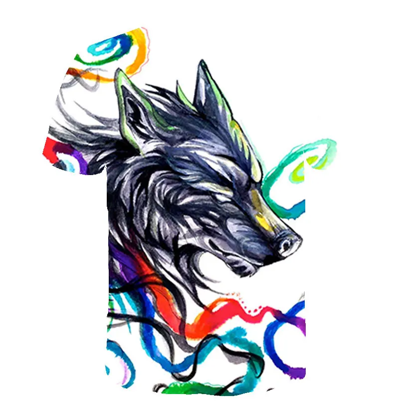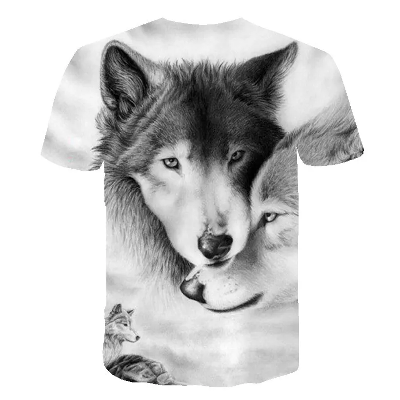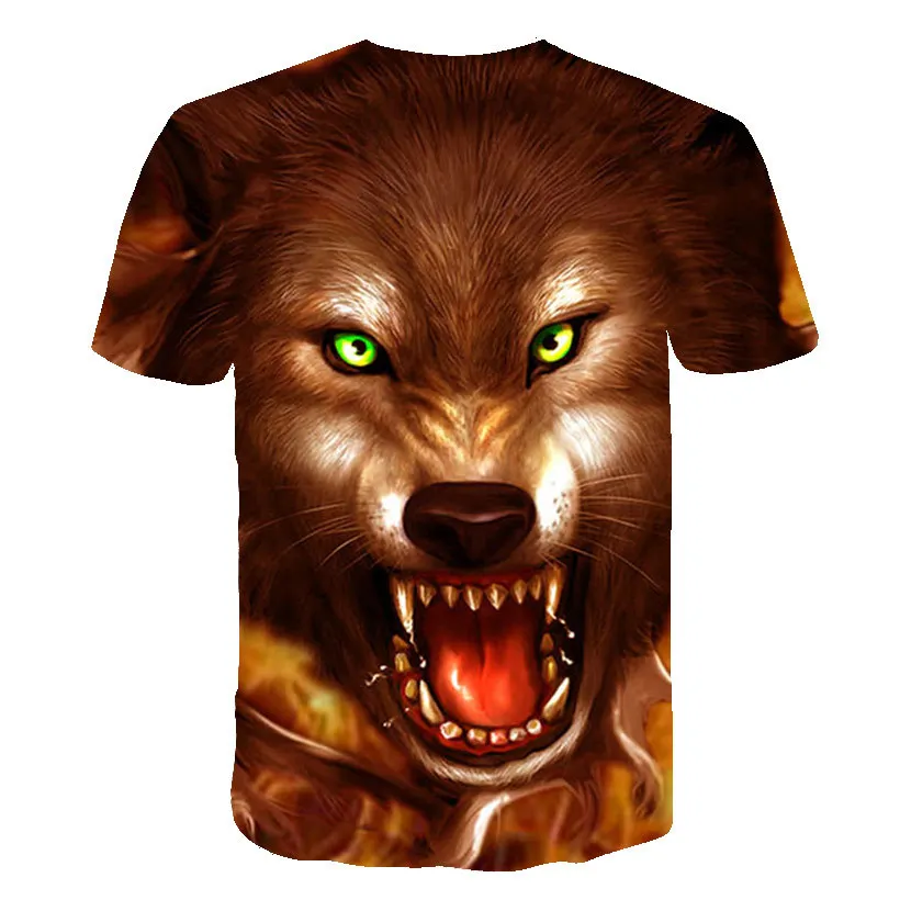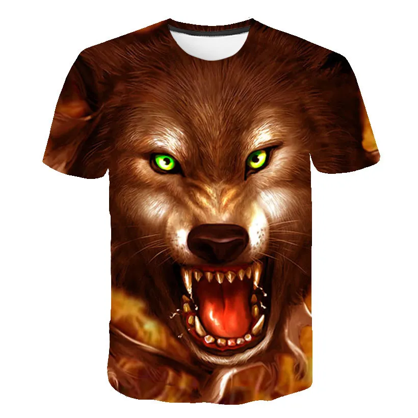Летняя футболка в уличном стиле 2021, крутая футболка с волчьим узором, Повседневная модная свободная футболка с 3D-принтом животных, топы с коротким рукавом