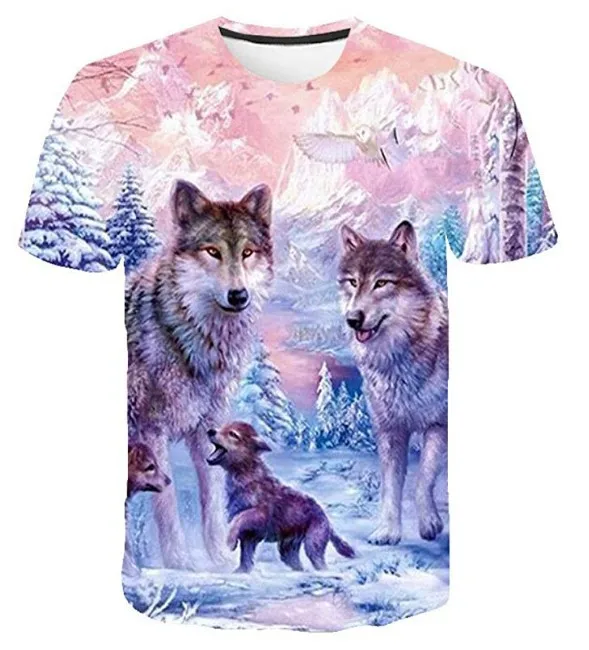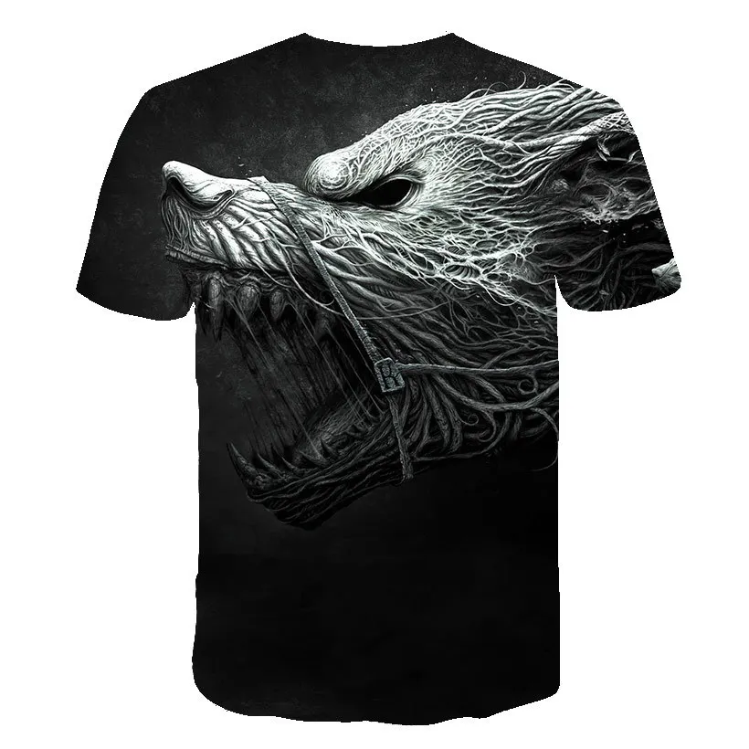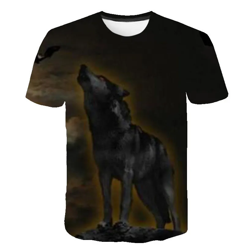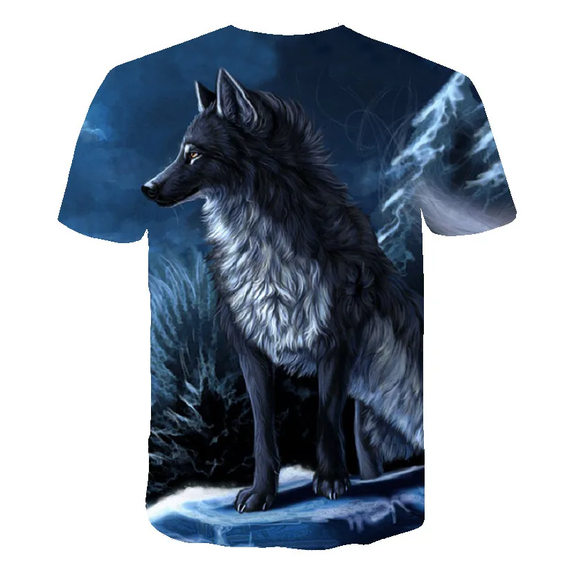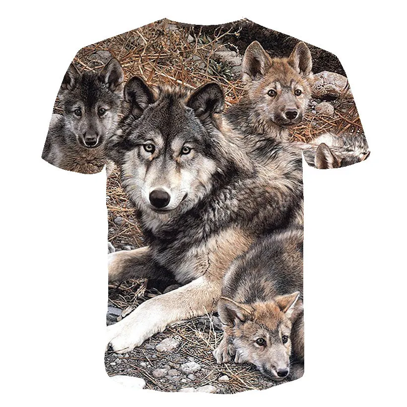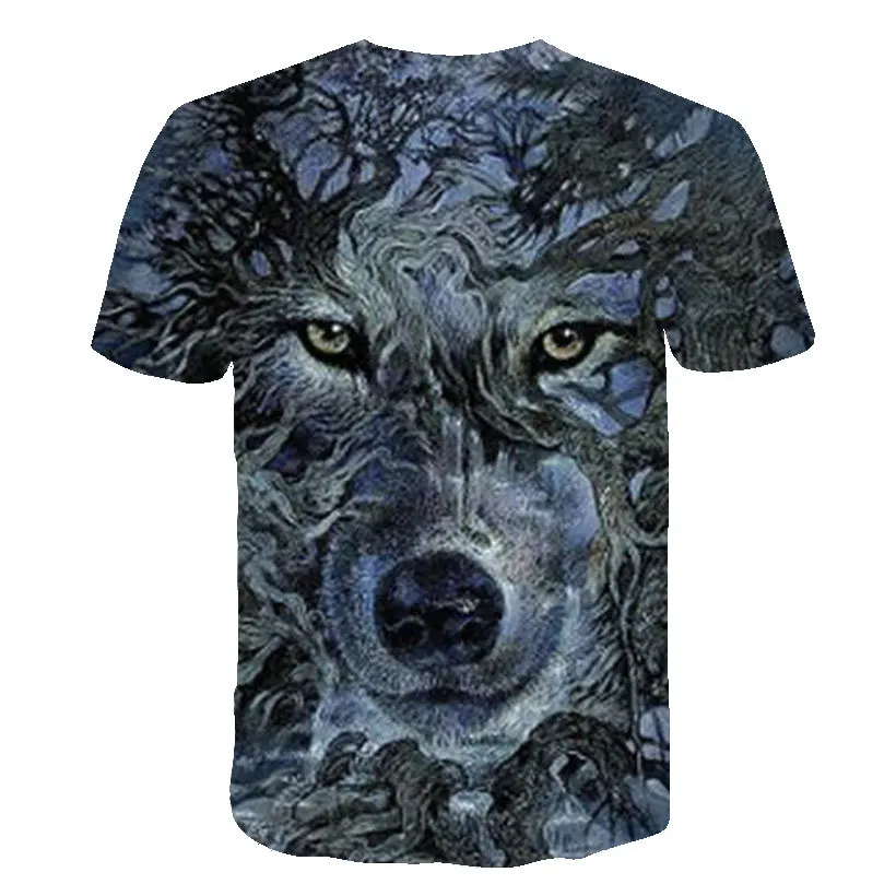 Летняя футболка в уличном стиле 2021, крутая футболка с волчьим узором, Повседневная модная свободная футболка с 3D-принтом животных, топы с коротким рукавом