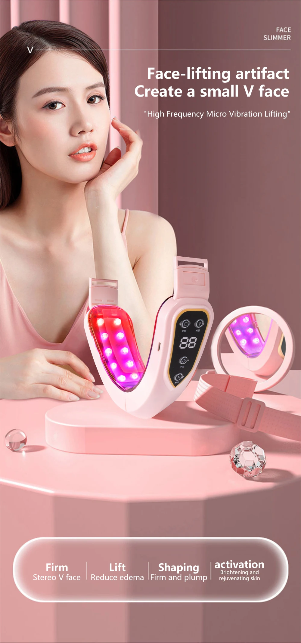 Устройство для лифтинга лица светодиодная фотонная терапия Вибрационный массажер для похудения лица двойной подбородок v-образная форма для подтяжки щек лица
