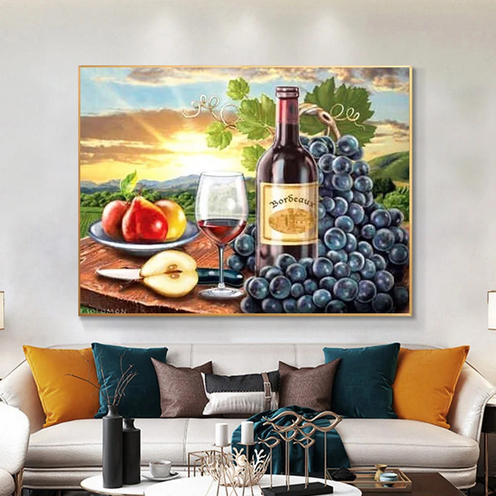 MomoArt Алмазная вышивка фрукты картина стразы кухня Алмазная мозаика вино вышивка крестом наборы Алмазная Живопись пейзаж декор для дома