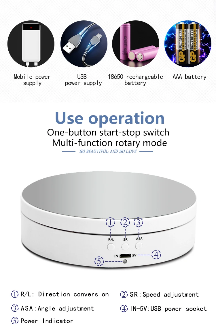 Вращающаяся на 3 скорости электрическая витрина с зеркалом, вращающийся на 360 градусов держатель для ювелирных изделий, батарея для фотографии, видео, съемки, реквизит