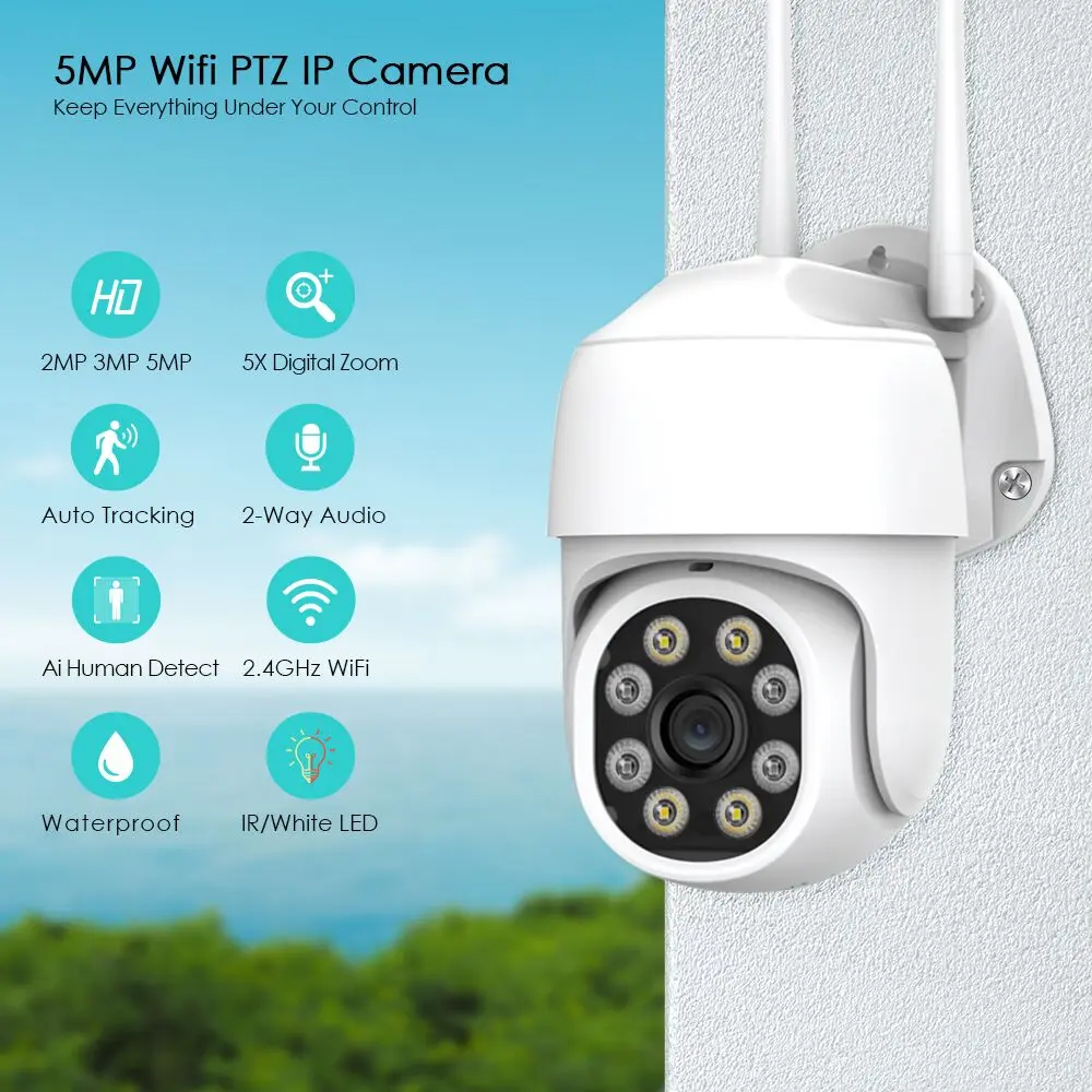 IP-камера с датчиком присутствия, 1080P, PTZ, Wi-Fi, 5 Мп, Уличная беспроводная камера наблюдения
