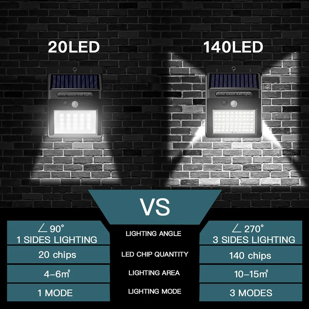 140 светодиодный солнечный светильник для украшения сада, уличный солнечный светильник, солнечный светильник, водонепроницаемый настенный светильник с датчиком движения человеческого тела