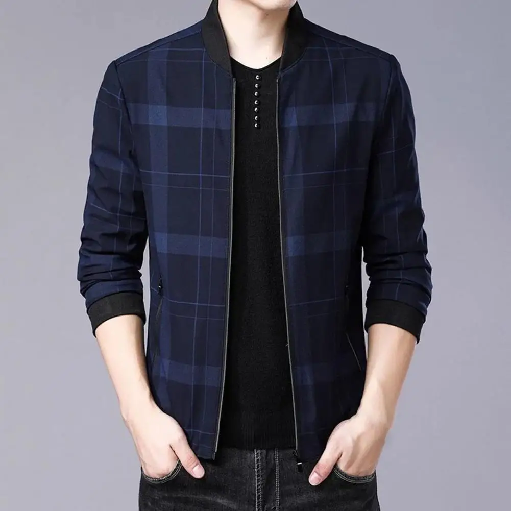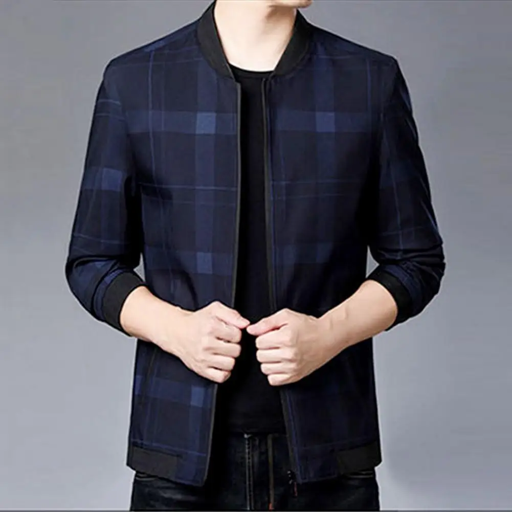 Куртка мужская клетчатая с воротником-стойкой, тонкая универсальная повседневная одежда, зимаосень