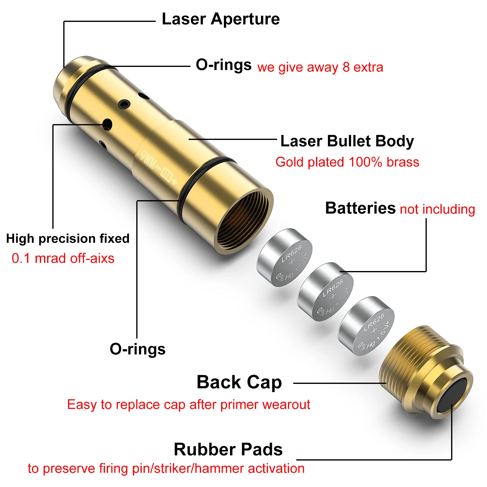 9 мм380 ACP40 SW223 Rem Лазерная тренировочная пуля Сухой огонь Лазерный тренировочный картридж Тактический лазерный тренировочный прицел с красной точкой