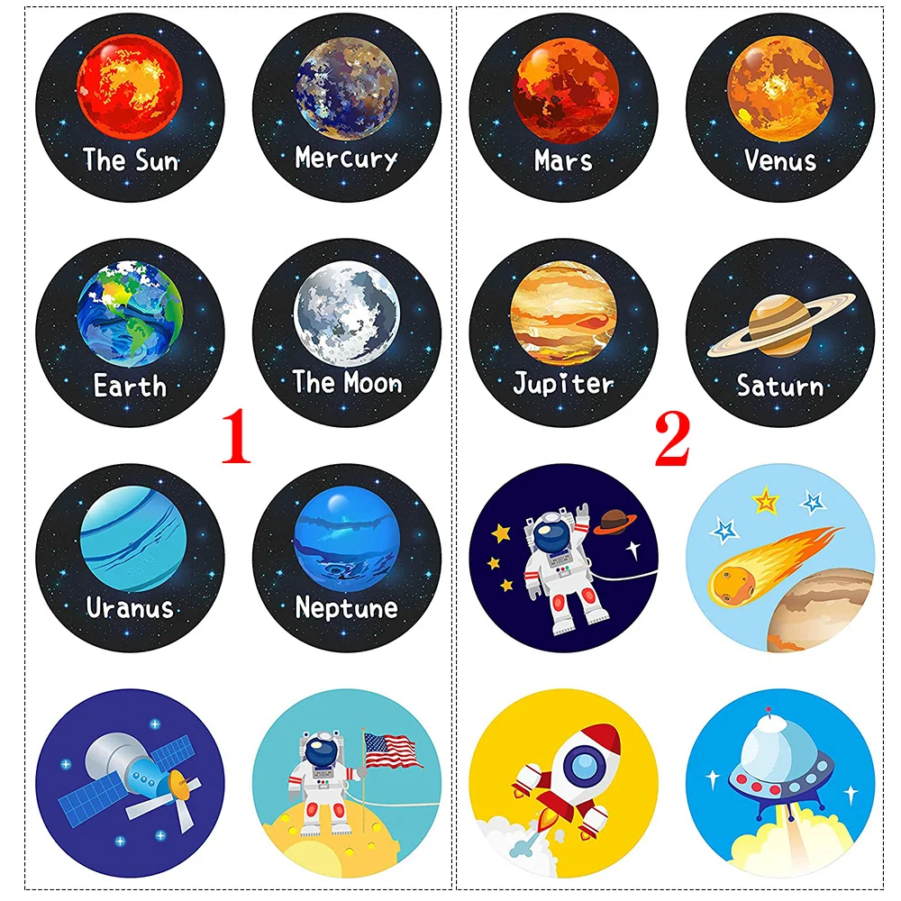 500 шт/рулон стикер солнечной системы для малышей Дети мультфильм космонавты комета Луна сателлиты награда стикер поставки для учителя