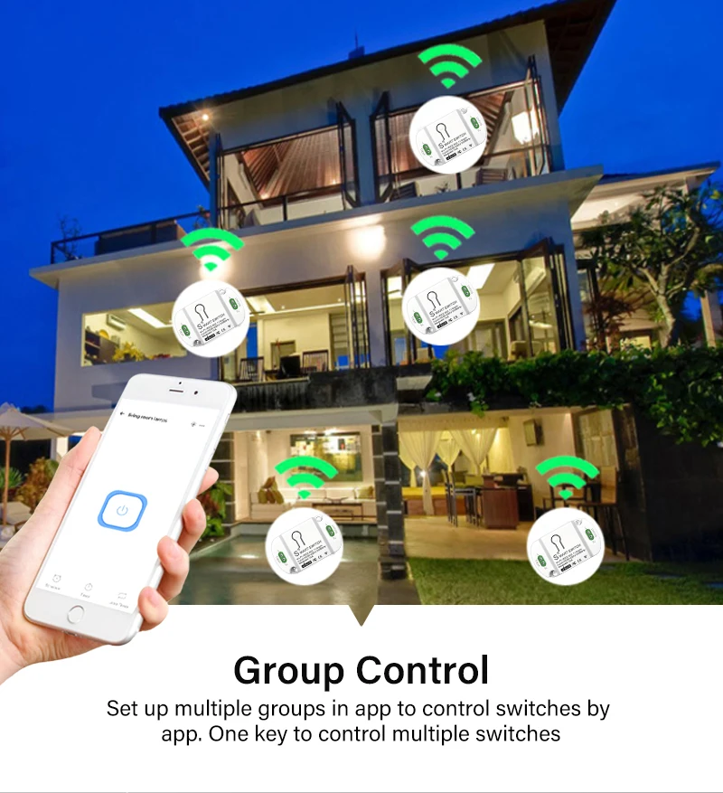 Вы можете использовать пульт дистанционного управления eWeLink smart switch, чтобы установить время и режим включения, чтобы включить или выключить свет или другие приборы дома.