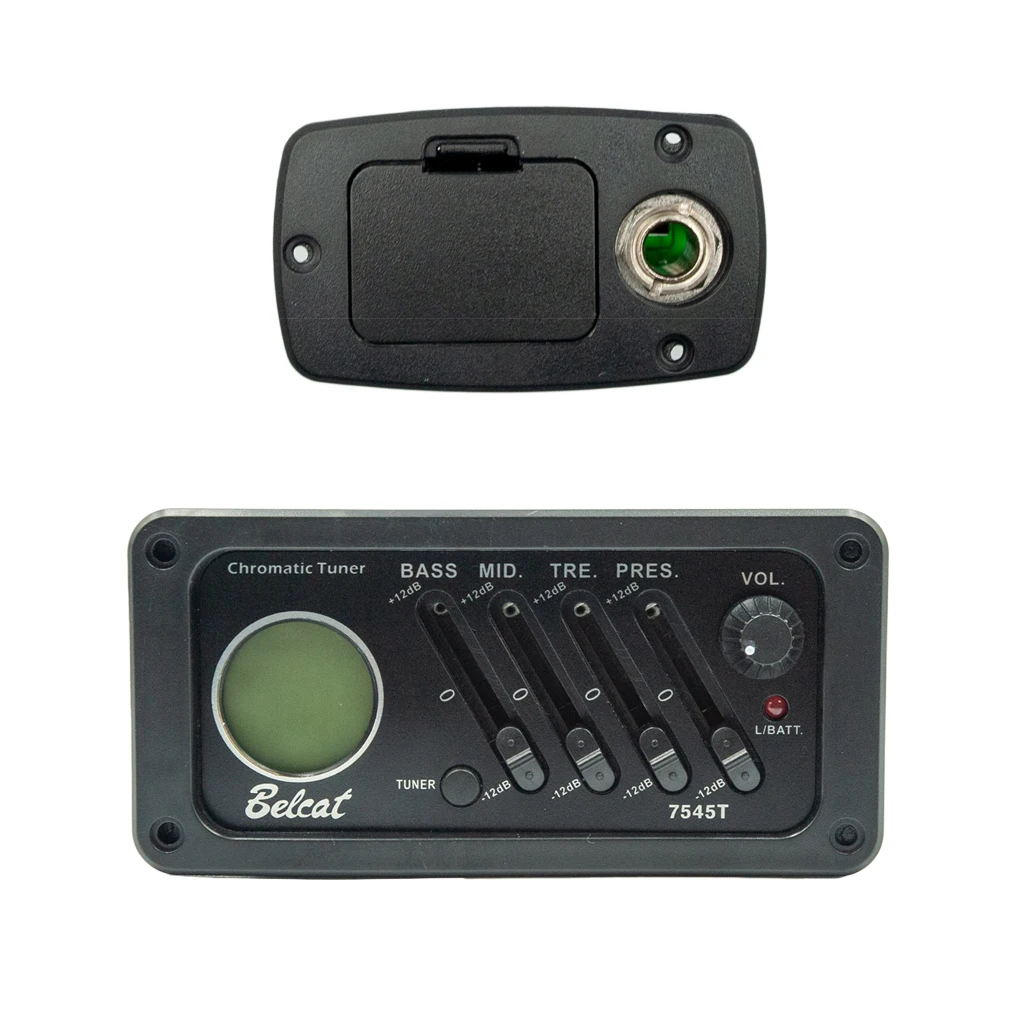 Эквалайзер эквалайзера EQ 7545T с 4 полосами может быть легко установлен в вашей акустической гитаре, и это необходимо для электрификации и усиления их звука.