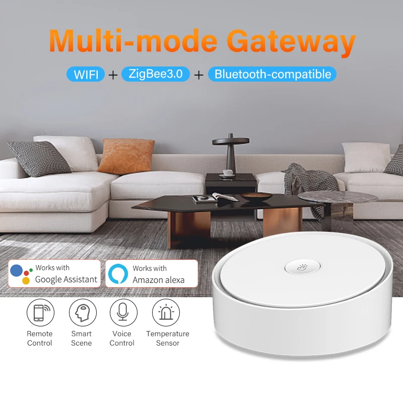 3. Пульт дистанционного управления: удаленно Управляйте устройствами, которые подключены к шлюзу через мобильный телефон через приложение Tuya Smart независимо от того, где вы находитесь, нет необходимости отдельно управлять устройствами Bluetooth и ZigBee в двух разных интерфейсах, просто Управляйте ими в одном многомодовом шлюзе с надежной локальной связью и поддержкой группового управления.