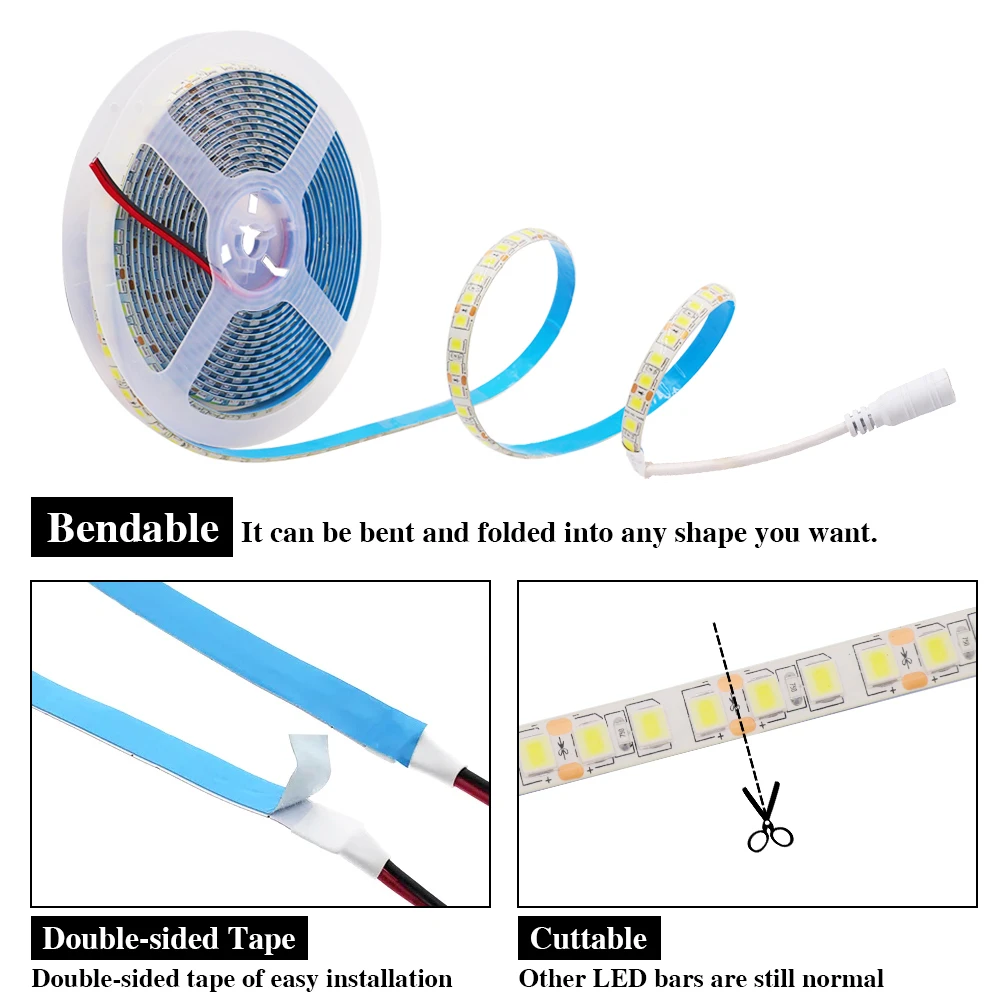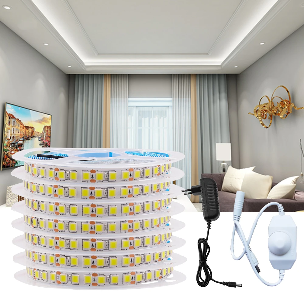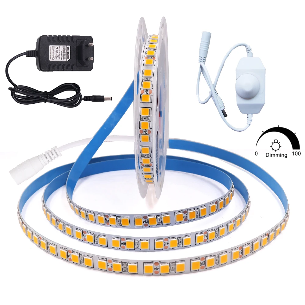 Светодиодная лента с регулируемой яркостью, светильник DC12V, гибкая светодиодная лента 5054 120 светодиодовм, водонепроницаемый светильник с питанием, набор диммеров, декор для спальни
