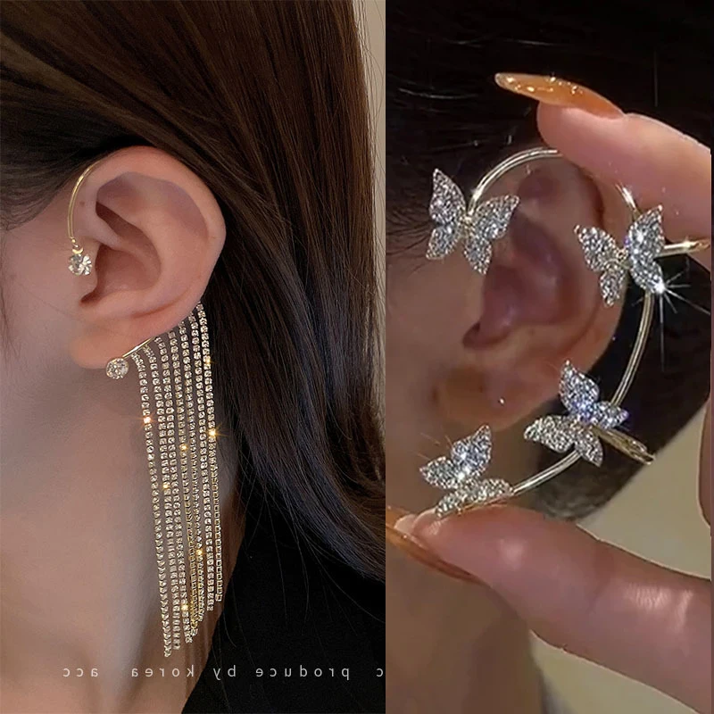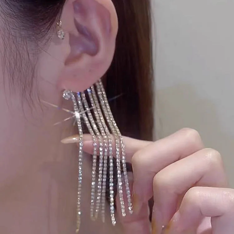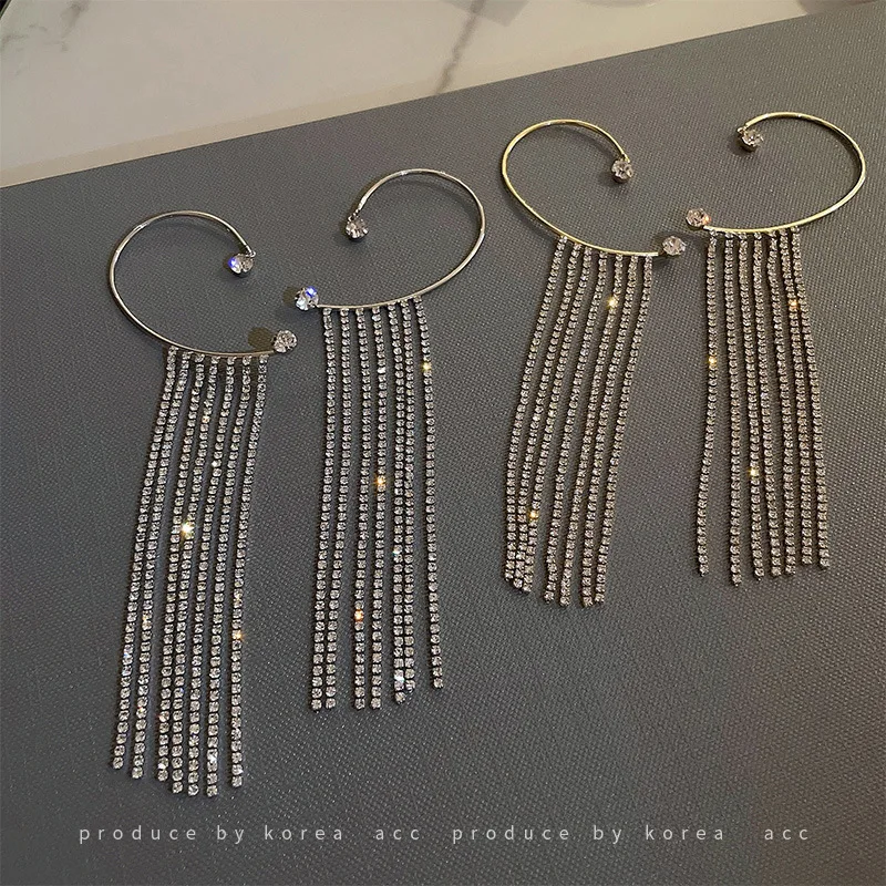 Винтажные длинные серьги-каффы с кисточками для женщин, роскошные серьги-клипсы с кристаллами для девушек, модные золотые украшения для свадебной вечеринки, подарки