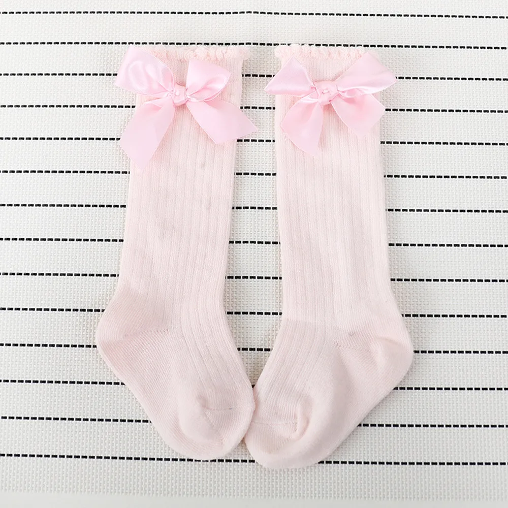 2021 детские носки для малышей девочек с большим бантом до колена длинные мягкие хлопковые кружевные детские вязаные ножи Meisje детская одежда
