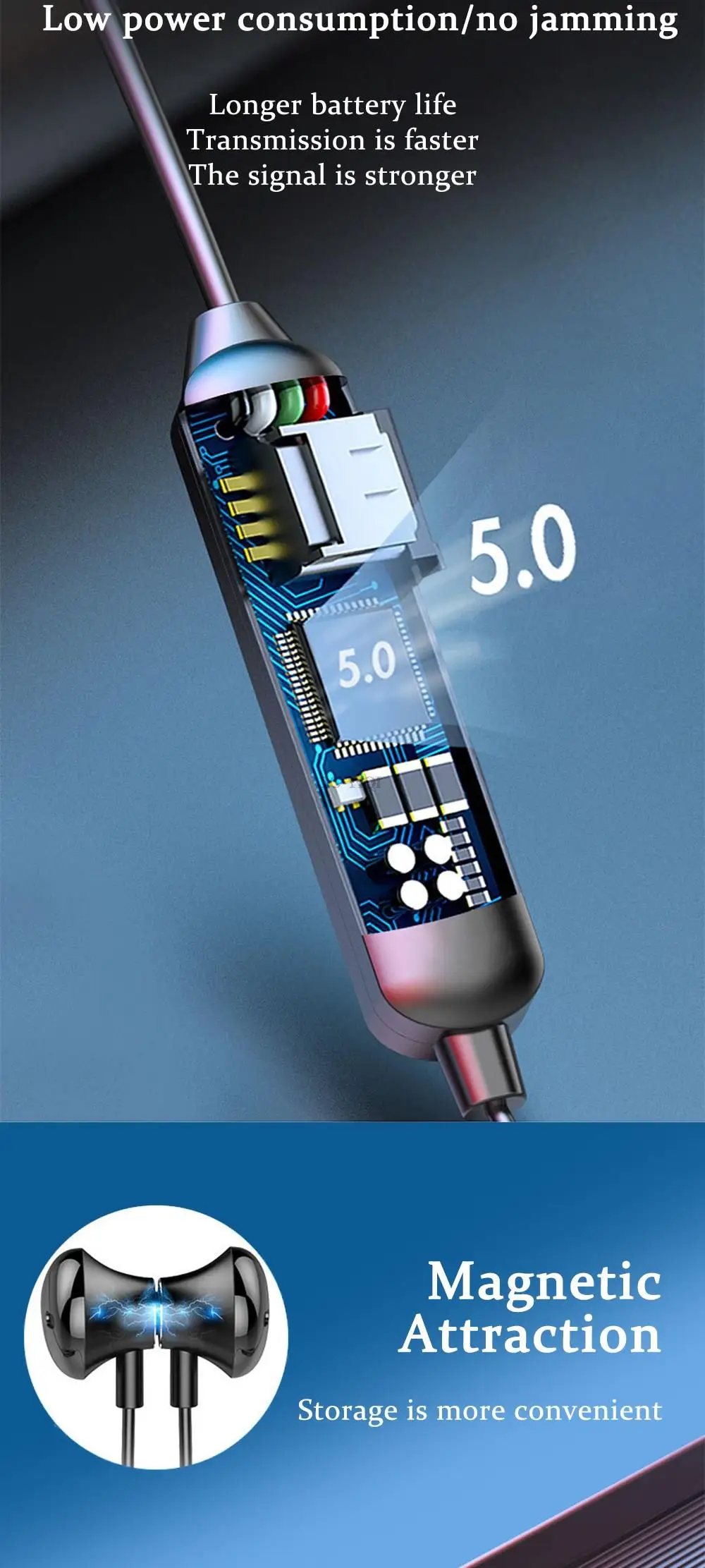 5,0 беспроводные Bluetooth-наушники, портативные шейные стереонаушн...