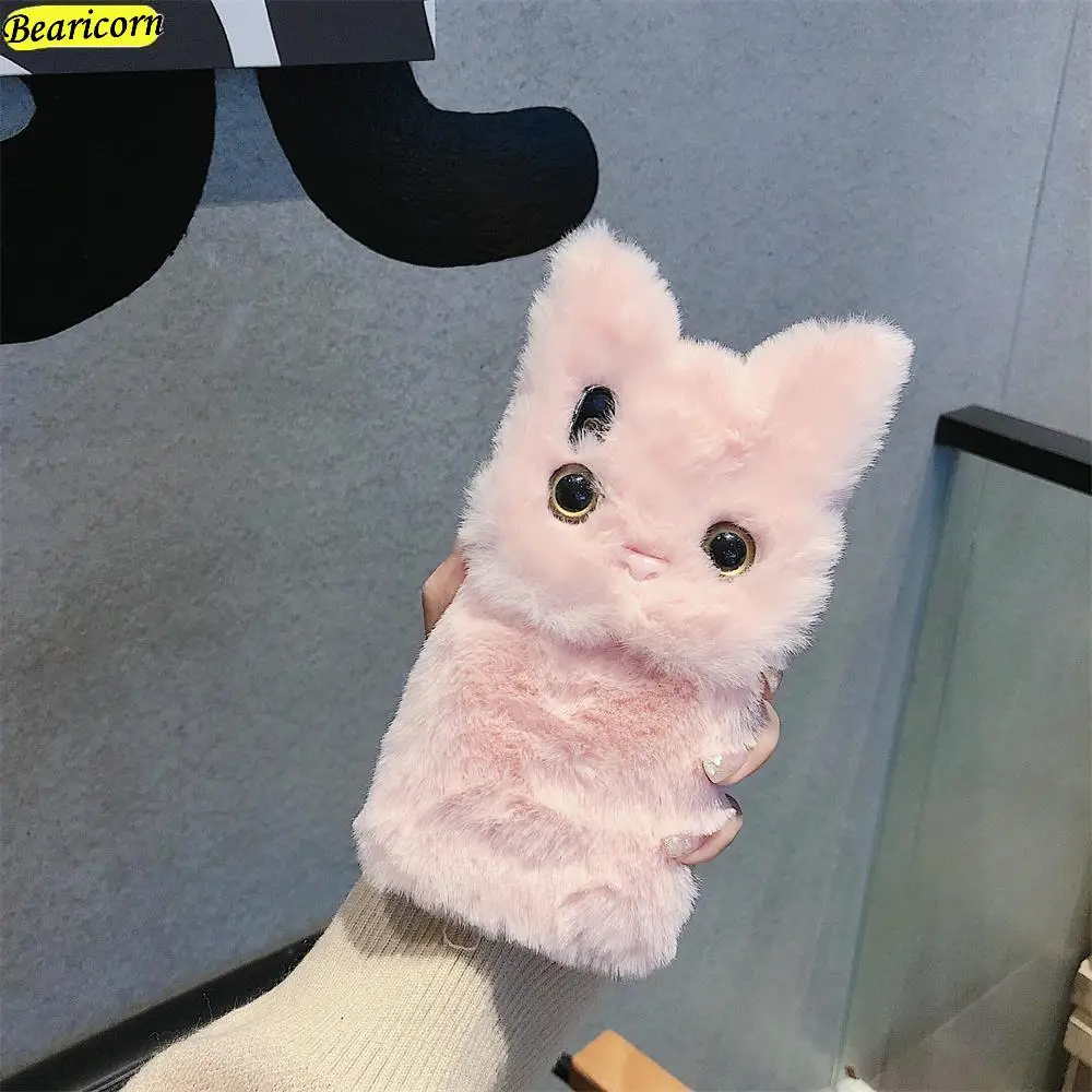 Мягкий плюшевый чехол для Samsung Galaxy A03 A13 A33 A53 A73 M01 M02s M11 M21 M31 M51 M12 M22 M32 M42 M52 M62, Меховой чехол с кошачьими глазами