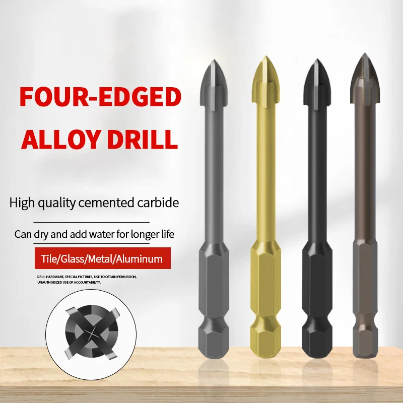 ударные биты сверло сверла Треугольное сверло четырехлопастная скрещенная стеклянная дрель, карбидная керамическая дрель, остекленный кирпич, шестигранная ручка, Открыватель отверстий 345681012 мм