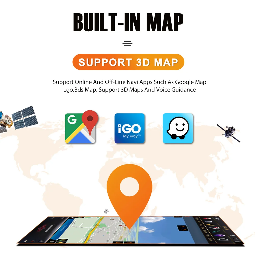 Навигация на Android похожа на телефон на Android. Вы можете установить приложение Android и gps-навигацию через навигационное приложение, выбранное в магазине программного обеспечения. Он также сохраняет большинство функций OEM. Другие аксессуары, такие как DVR, OBD, задняя камера, камера 360 ° и т. д.