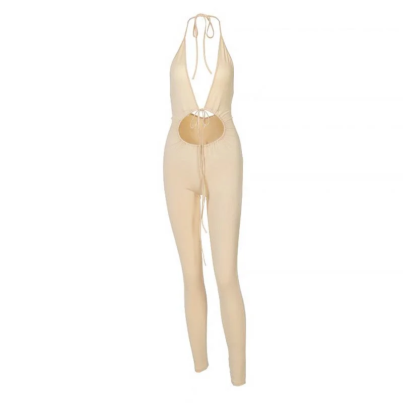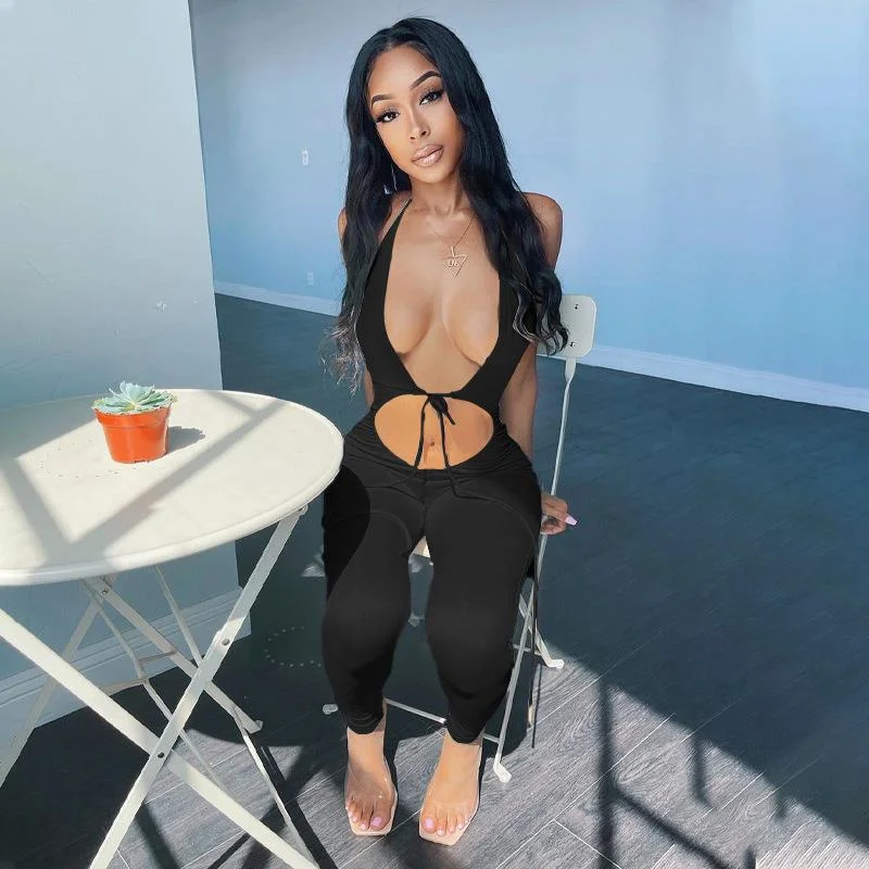 Женский комбинезон с открытой спиной, V-образным вырезом, без рукавов