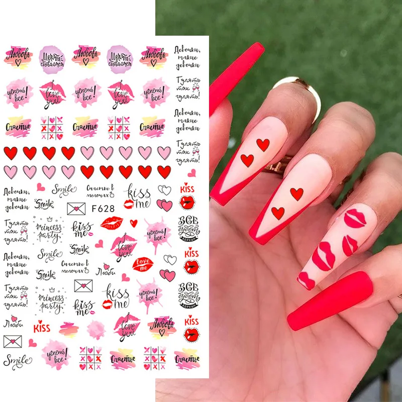 3D День Св. Валентина любовь сердце искусство ногтей фотообои красные губы сердцебиение письмо Переводные Слайдеры для ногтей Дизайн Маникюр