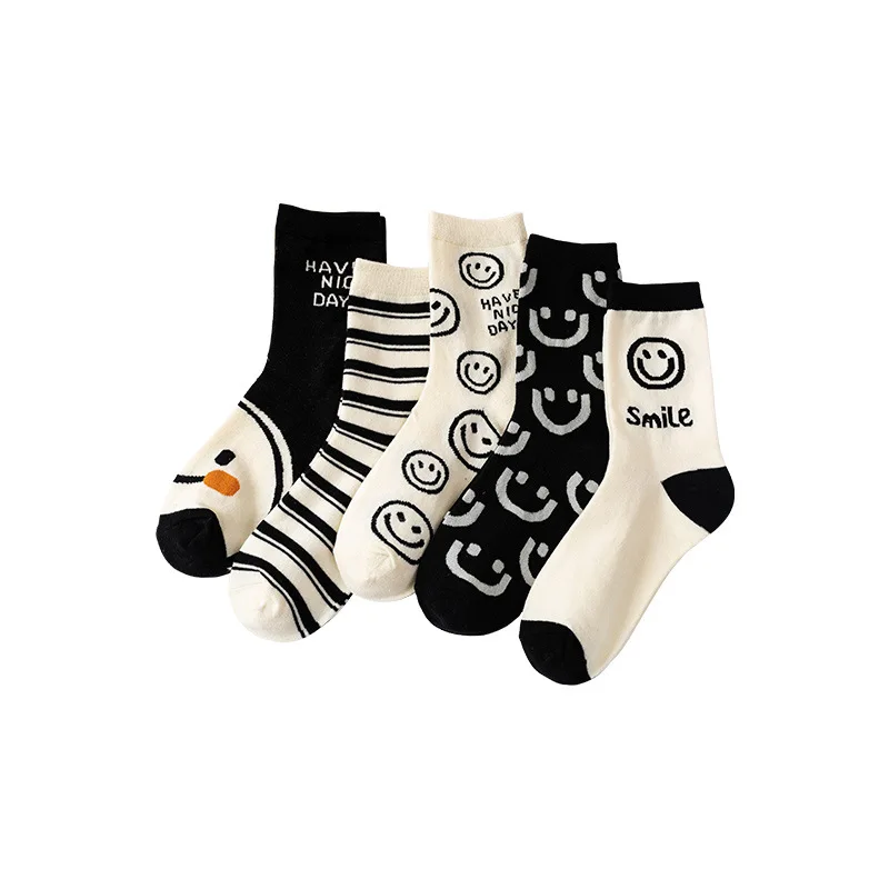 Женские носки в полоску с улыбающимся лицом, милые короткие носки для девочек, японская мода, носки в стиле Харадзюку со смайликом, женские носки, прямые поставки