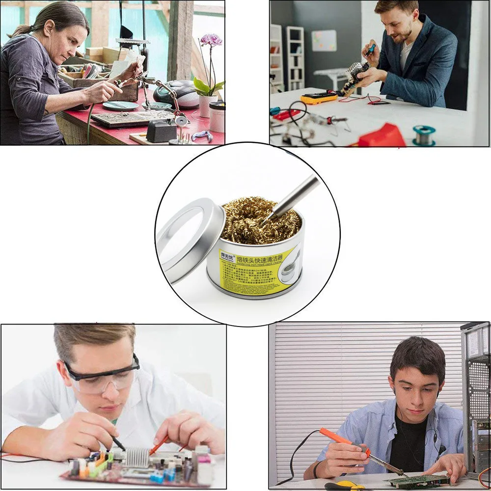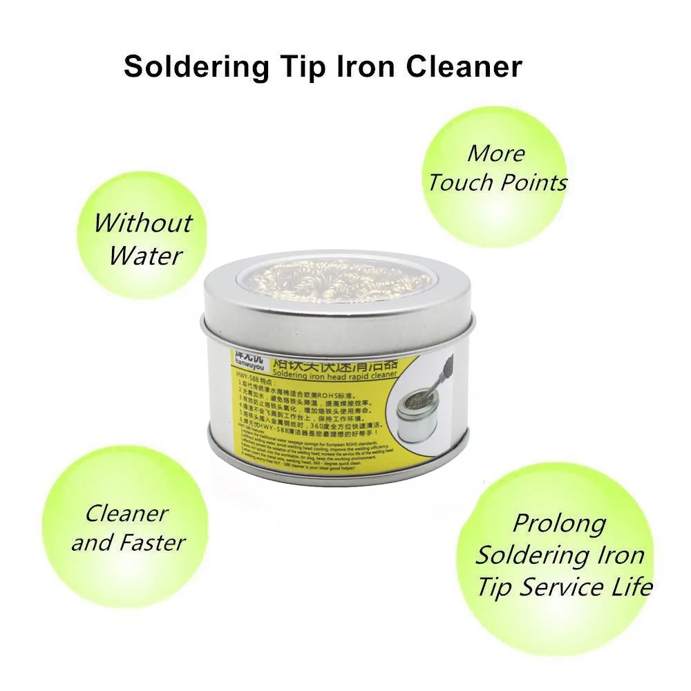 Главное преимущество продукта-защита Из железных наконечников не потемнели, черные железные наконечники будут яркими после Ясно, это делает железные наконечники использовать дольше, медный чистый шар не нужно Используйте чистую воду, она не снижает температуру паяльных наконечников, заменяет Губка, бессвинцовые наконечники для припоя, используя хороший помощник, пайка Утюжок очиститель эффект очистки лучше, чем традиционные чистые губки.