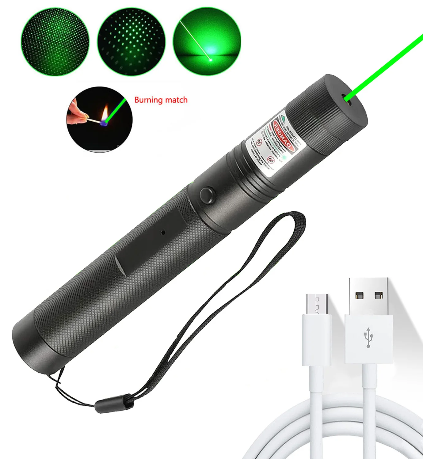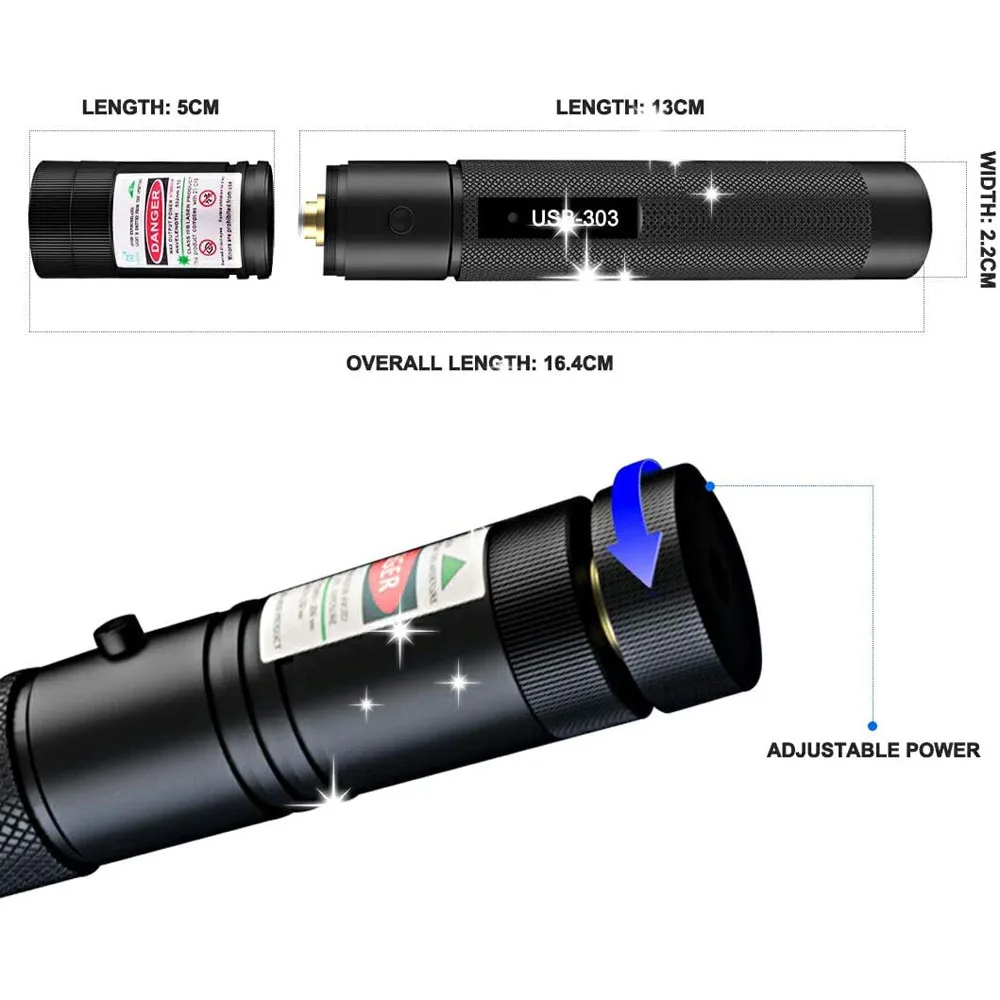 Высокомощная 532нм 10000 м зеленаякраснаяфиолетовая лазерная указка USB303 ручная перезаряжаемая Регулируемая фокусировка с USB-кабелем