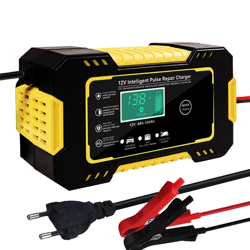 Зарядное устройство для автомобильного аккумулятора, 12 В, с ЖК-дис...