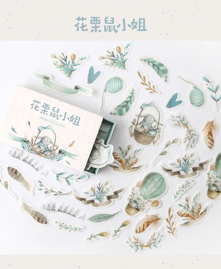 40 шт.коркор. милые наклейки, упакованные в коробку, Foodie, леса, ...