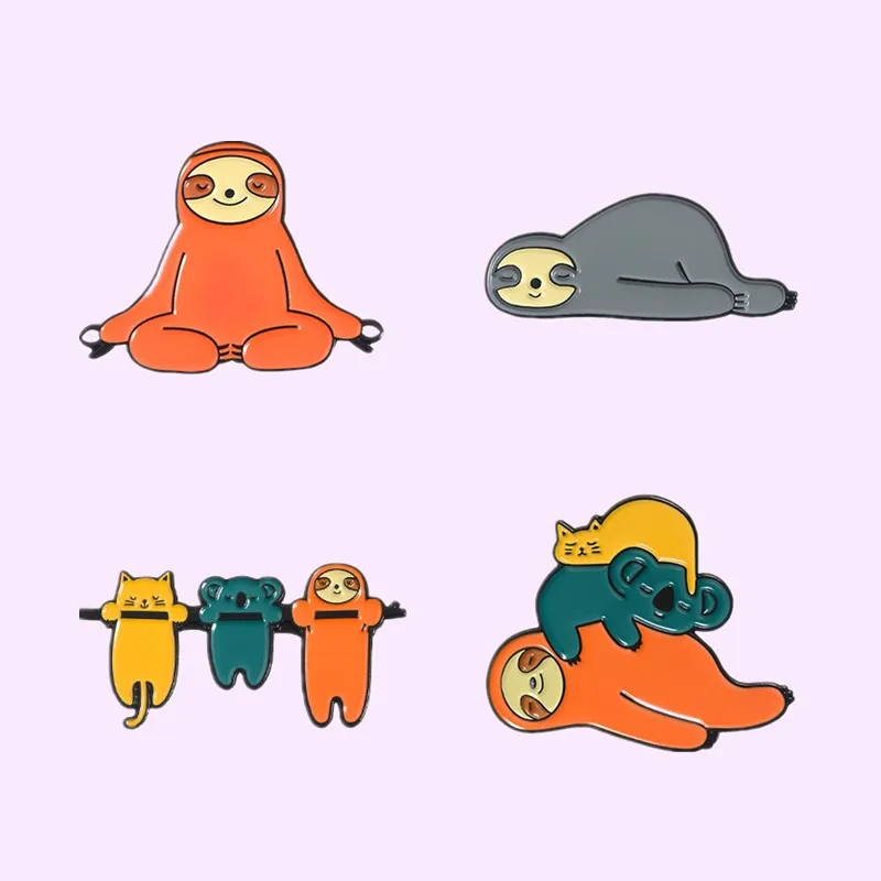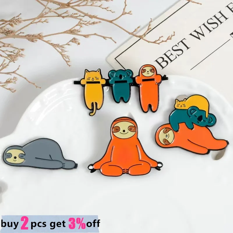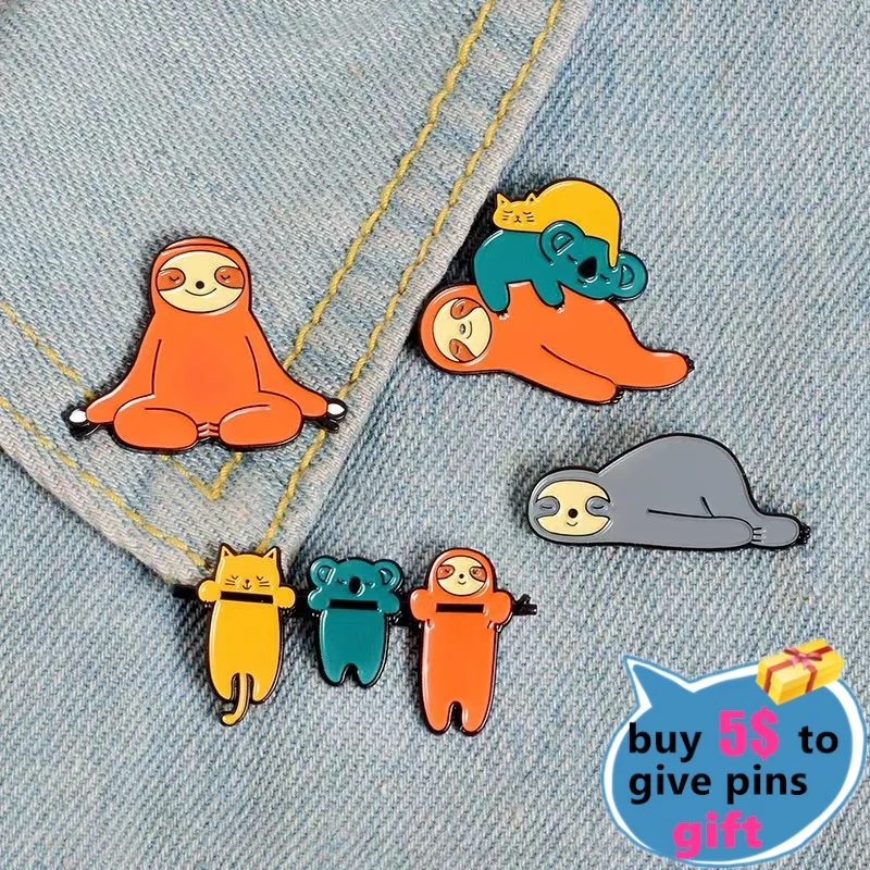 Оптовая продажа, супер милая Ленивец коала и кошка! Эмалированные булавки, бриллиантовые броши для лацканов для занятий йогой, подарки для друзей