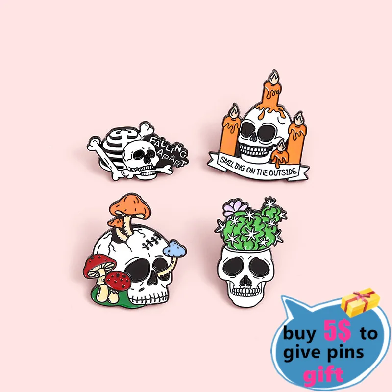 Оптовая продажа, эмалированные заколки в виде костей с потерянными косточками, заколки в виде гриба, кактуса, свечи и черепа, заколки для лацканов, значки, броши в стиле панк, ювелирные изделия, подарок для друзей