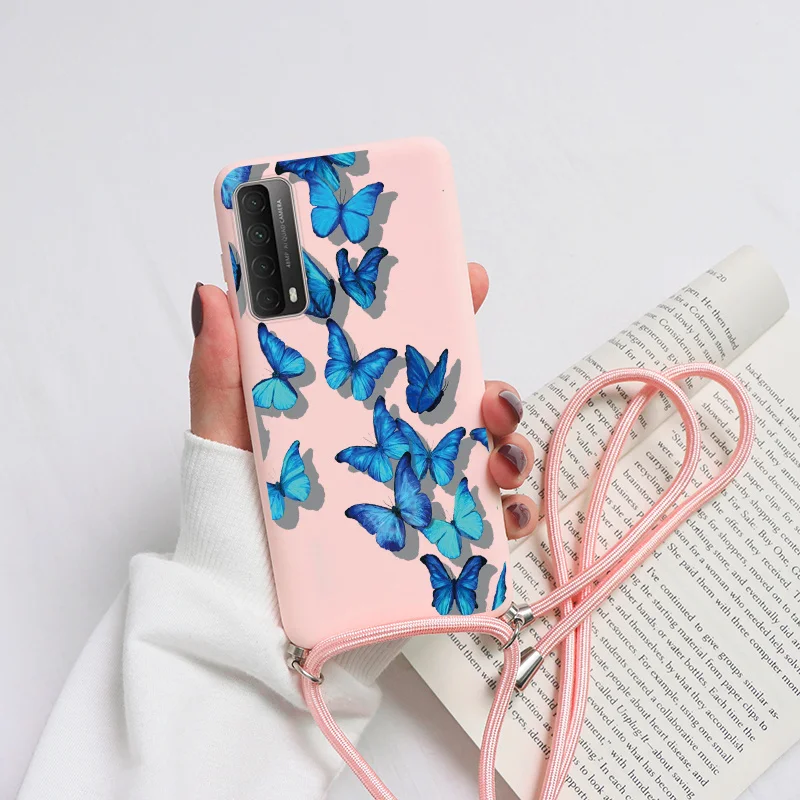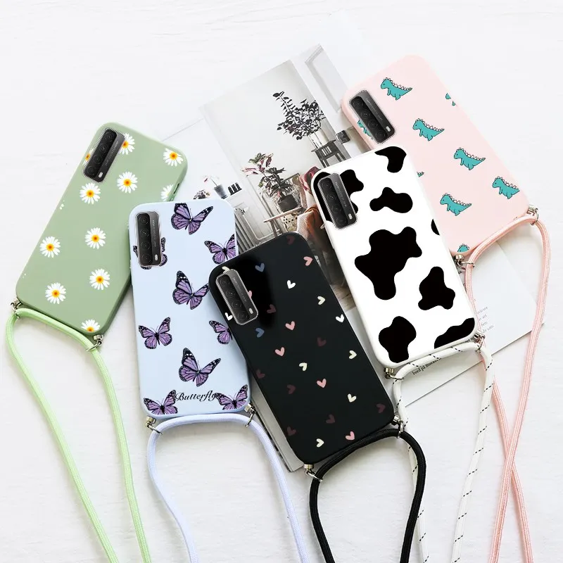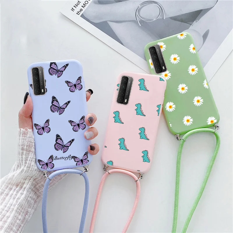 Матовые чехлы для Huawei P Smart 2 0 2 1, мягкое ожерелье-Кроссбоди из ТПУ Psmart 2020 для Huawei P Smart 2021, модные чехлы с цепочкой и шнурком