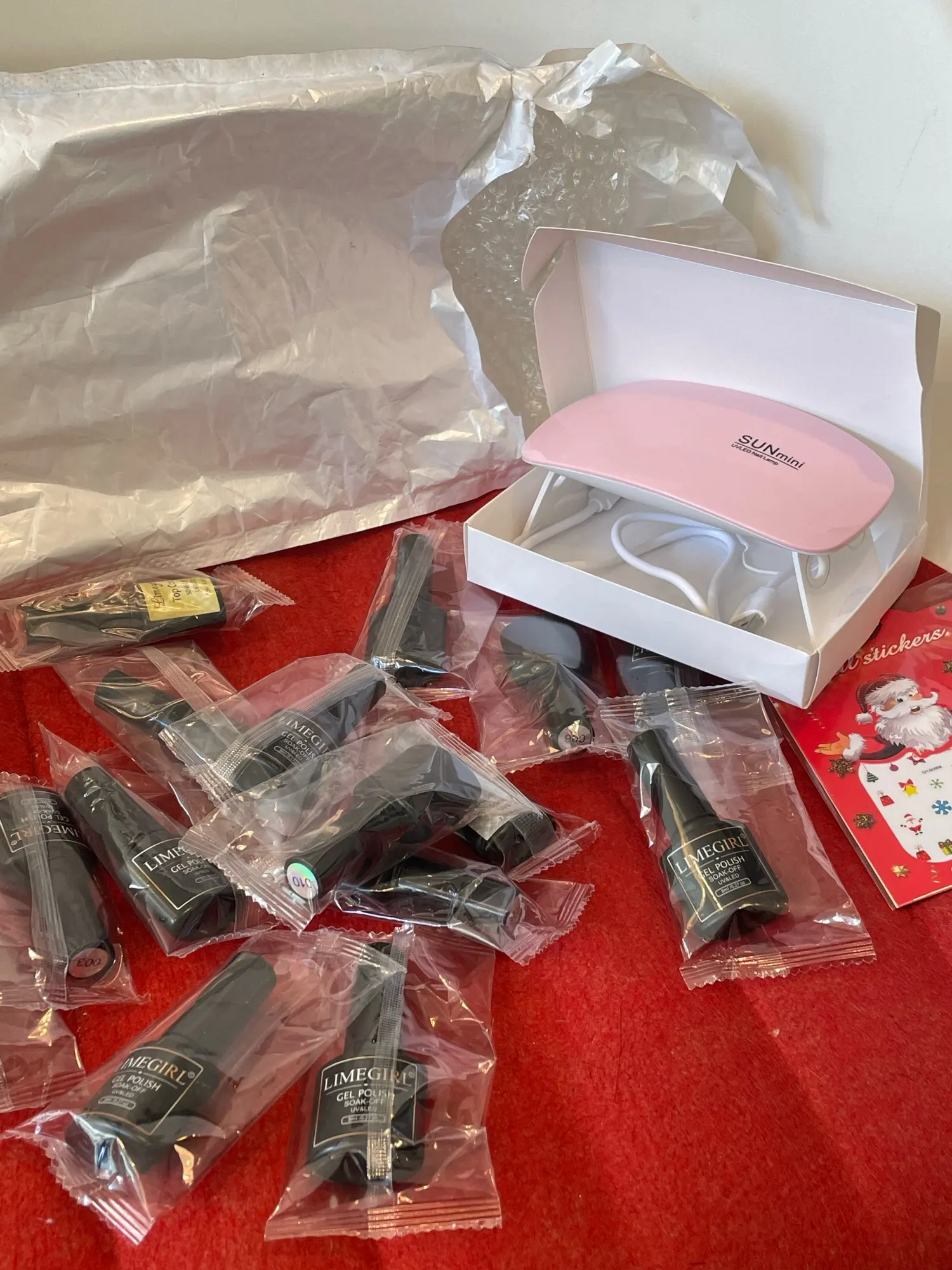 Заказ шел 1,5 месяца. Коробка пришла мятая, но все целое, гель лаки каждая упаковано отдельно. Набор хороший, гель лаки не плохие, в два слоя ложится хорошо. Спасибо. Рекомендую.