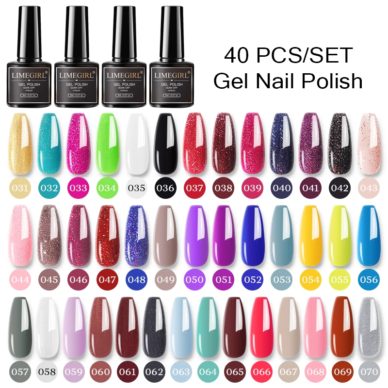 Limegirl набор гель-лаков для ногтей, 24 Вт, 30 Вт, 40/60 шт блеск гель-Лаки набор для маникюра Полупостоянный Гибридный лак базовый и финишный гель лак для ногтейХарактеристики Товара:Бренд: LimegirlНазвание: Гель-лакОбъем: 8 млЦвет: 60 цветов sИзлеченная: УФ/Светодиодная лампа-Качество-наш первый приоритет.-Светильник, почти без запаха (только верхнее покрытие и основа имеют умеренный запах), мы применяем только органическую текстуру для защиты вашего здоровья.-Цвет будет сиять до 30 дней.-Цвета на выбор, подходят для всех случаев.Шаг за шагом:-1. Форма ногтя. Слегка смочите поверхность ногтевой пластины. Дезинфицировать.-2. Нанесите базовый слой основы от кутикулы до свободного края (не забудьте запечатать край ногтя). Высушите ногти под светодиодный светильник в течение 10 секунд или УФ-светильник в течение 2 минут.-3. Нанесите тонкое пальто отмачиваемого геля на выбор. Свободный край крышки. Лечение: 30 секунд в светодиодный светильник, или 2 минуты в УФ-лампе.-4. Повторите 2-е тонкое покрытие отмачиваемого гель-лака на ногти. Высушите под светодиодный лампой в течение 30 секунд или УФ-светильник в течение 2 минут.-5. Нанесите верхнее пальто. Свободный край крышки. Лечение: 30 секунд в светодиодный светильник.-6. Удалите липкий остаток на ногтях с помощью очищающего средства. Затем нанесите питающее масло кутикулы для увлажнения влаги в кутикулу и кожу вокруг ногтя.Для удаления:-1. Отмачивайте ногти в акриловом удалителе в течение 5 минут.-2. Аккуратно Наденьте на каждый ноготь всю эмаль для ногтей.Внимание:1. Объем-7 мл. Поскольку емкость бутылки составляет более 7 мл, гель для ногтей не будет полностью заполнен бутылкой!2. Плотно закрываются. Держите подальше от солнечного света. Хранить в недоступном для детей месте.