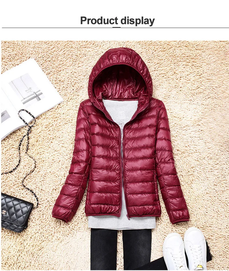 Пуховик женский зимний, ультралегкий, тонкий, с капюшоном, теплая п...