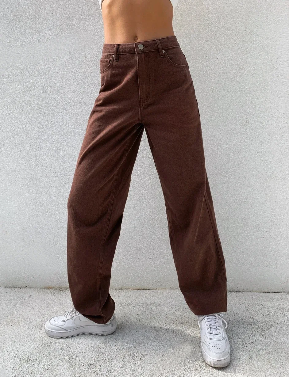 Джинсы женские, прямые, с высокой талией, в стиле Харадзюку