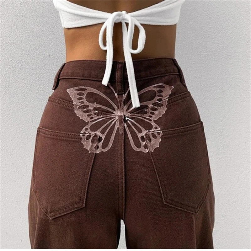 Прямые джинсовые брюки Harajuku с принтом бабочки, женские свободны...