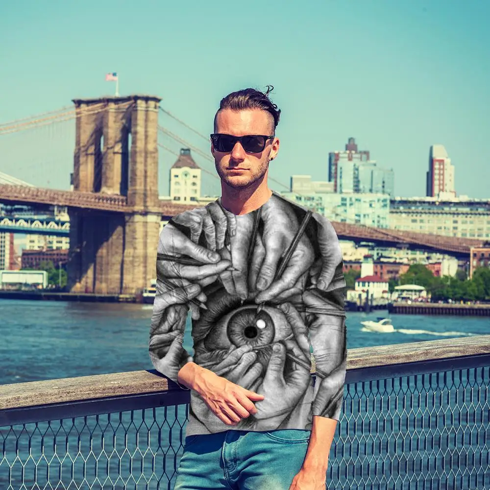 Футболка мужская с длинным рукавом KYKU, летняя футболка с 3D-принтом