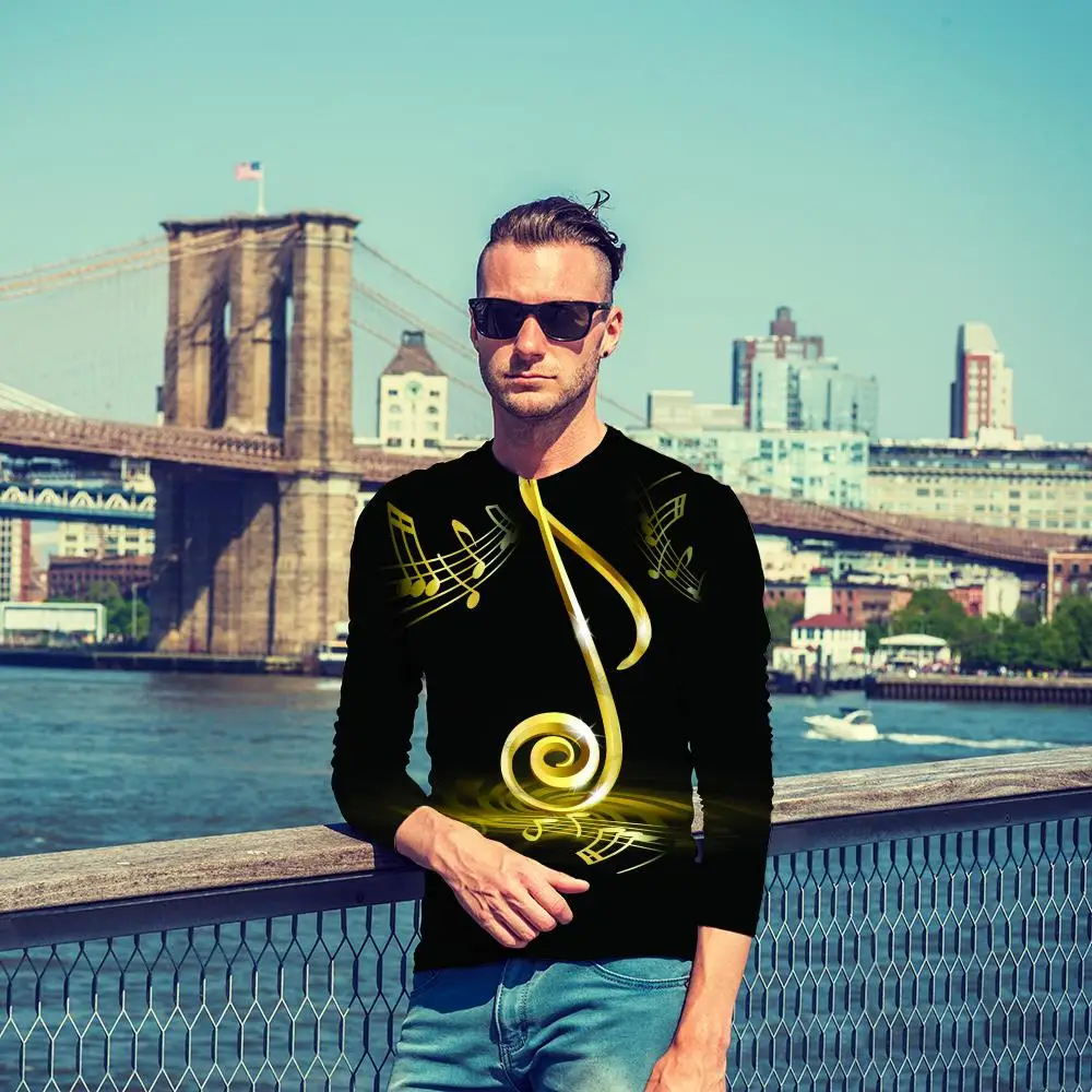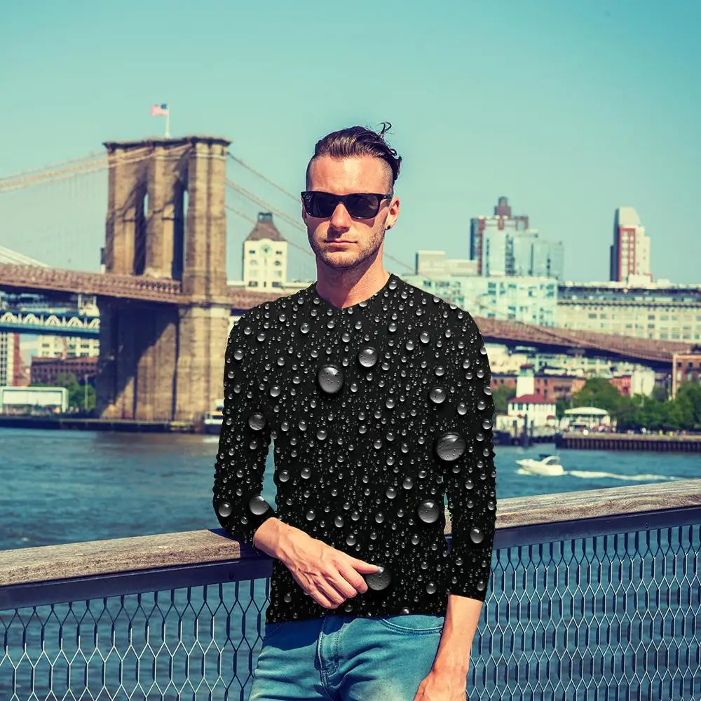 Мужская футболка KYKU, черная футболка с длинным рукавом и 3D-принт...