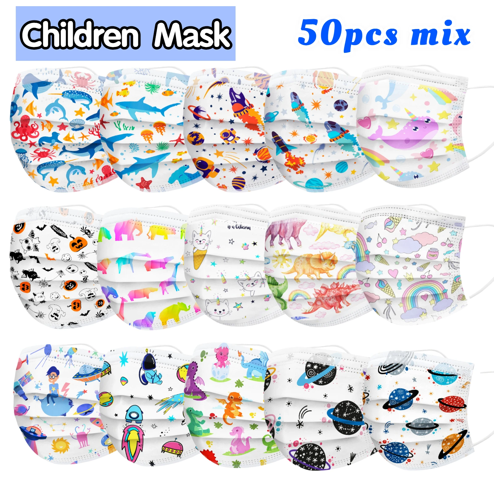 50 шт. в коробке, одноразовая маска для детей с героями мультфильмов, 3 слоя, детский фильтр, гигиеническая плотная маска для лица, для ушей, быстрая доставка